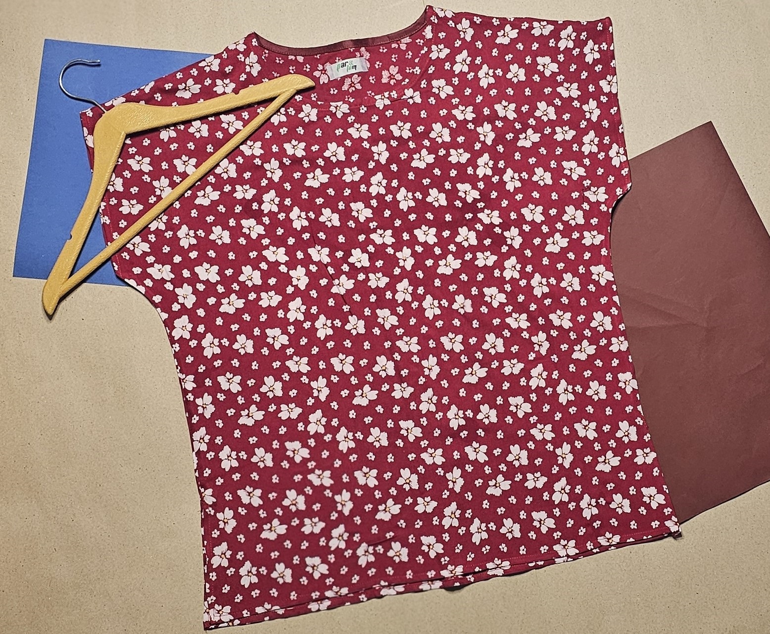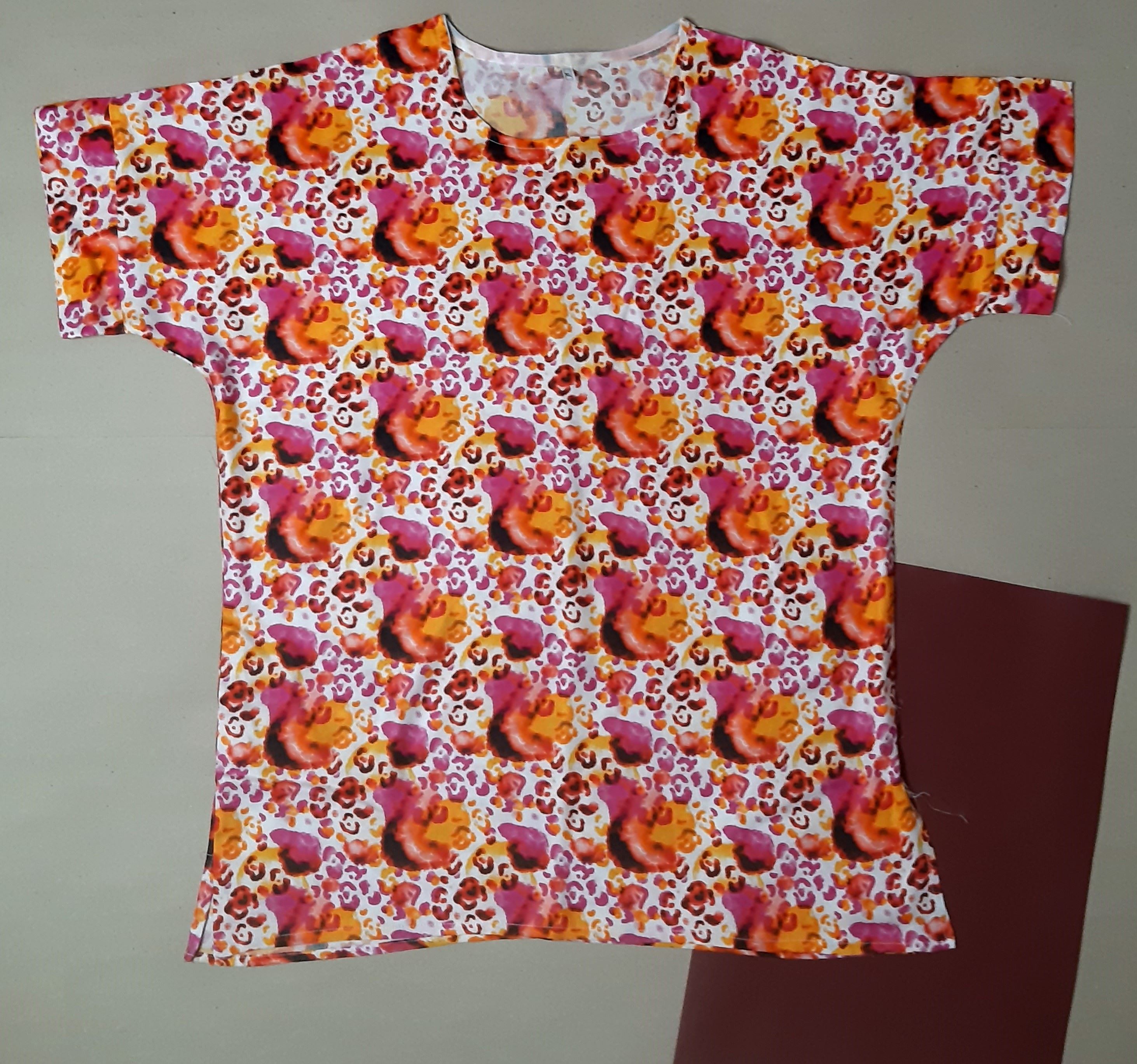 تیشرت زنانه مدل پانچ طرح گل ریز زرشکی