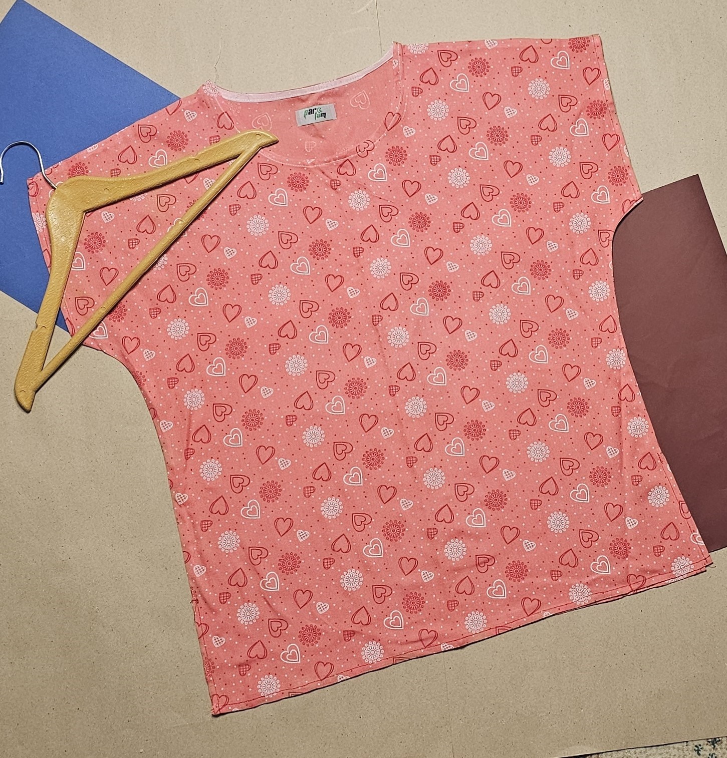 تیشرت زنانه نخی طرح قلب صورتی
