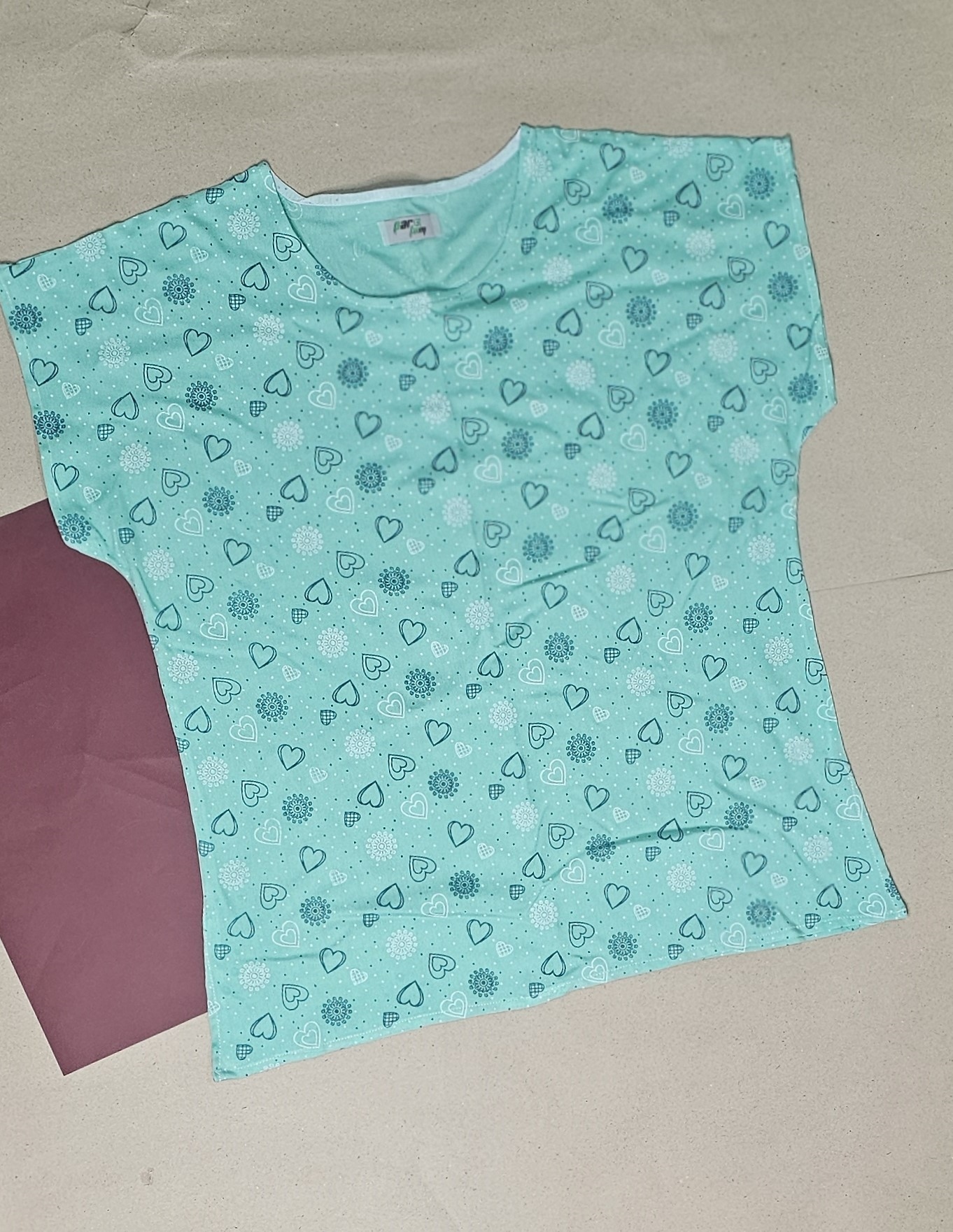 تیشرت زنانه نخی طرح قلب سبز ابی