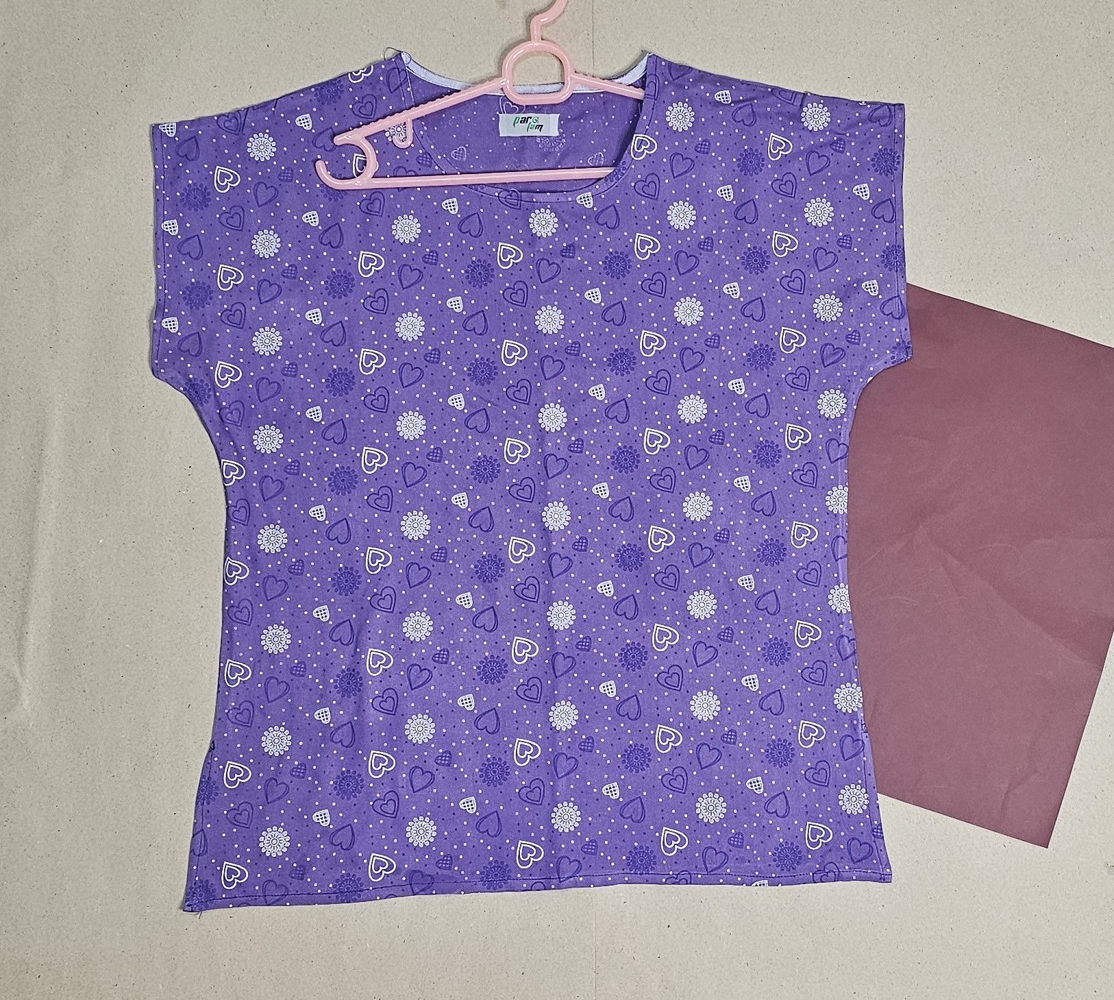 تیشرت زنانه نخی طرح قلب بنفش