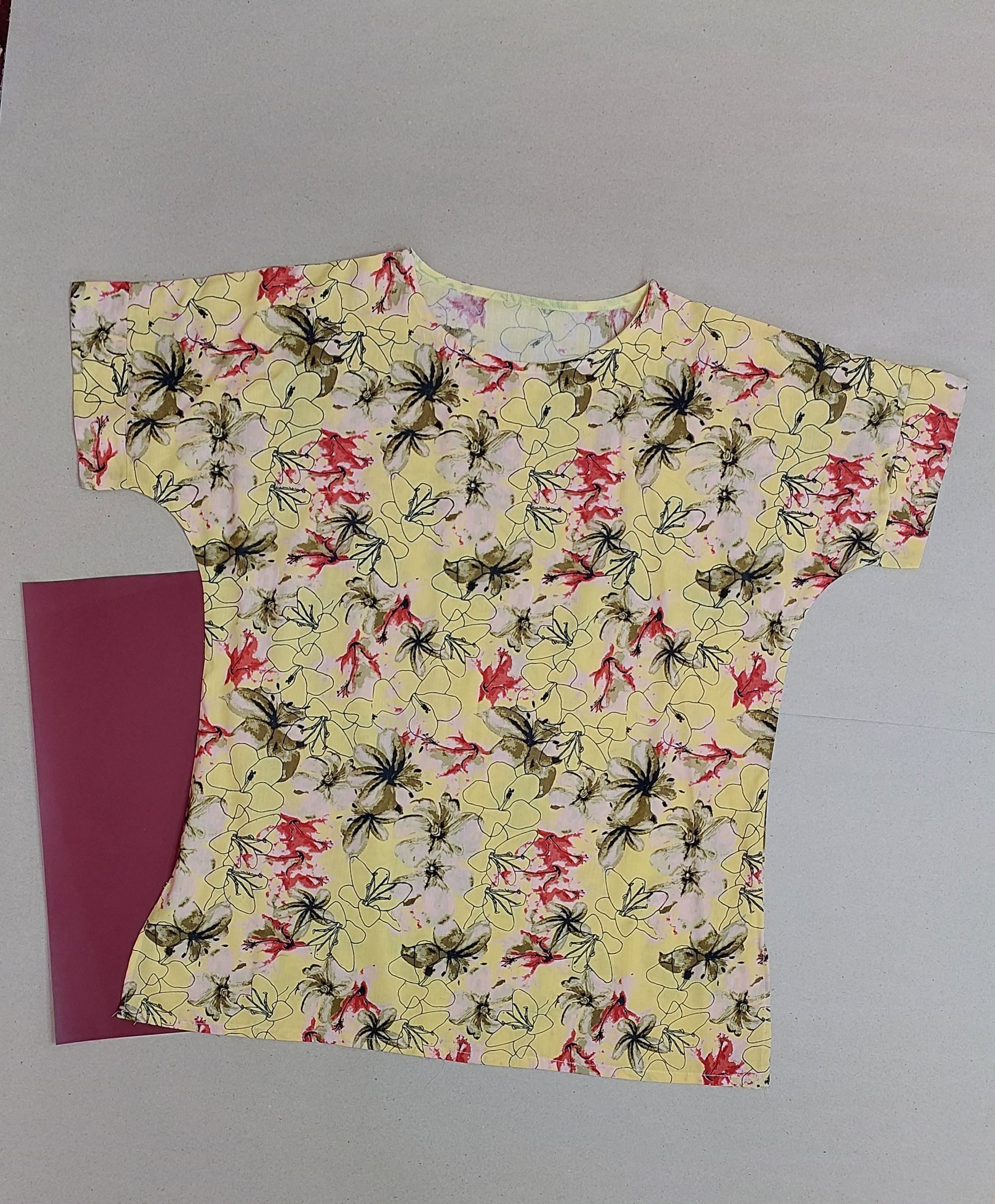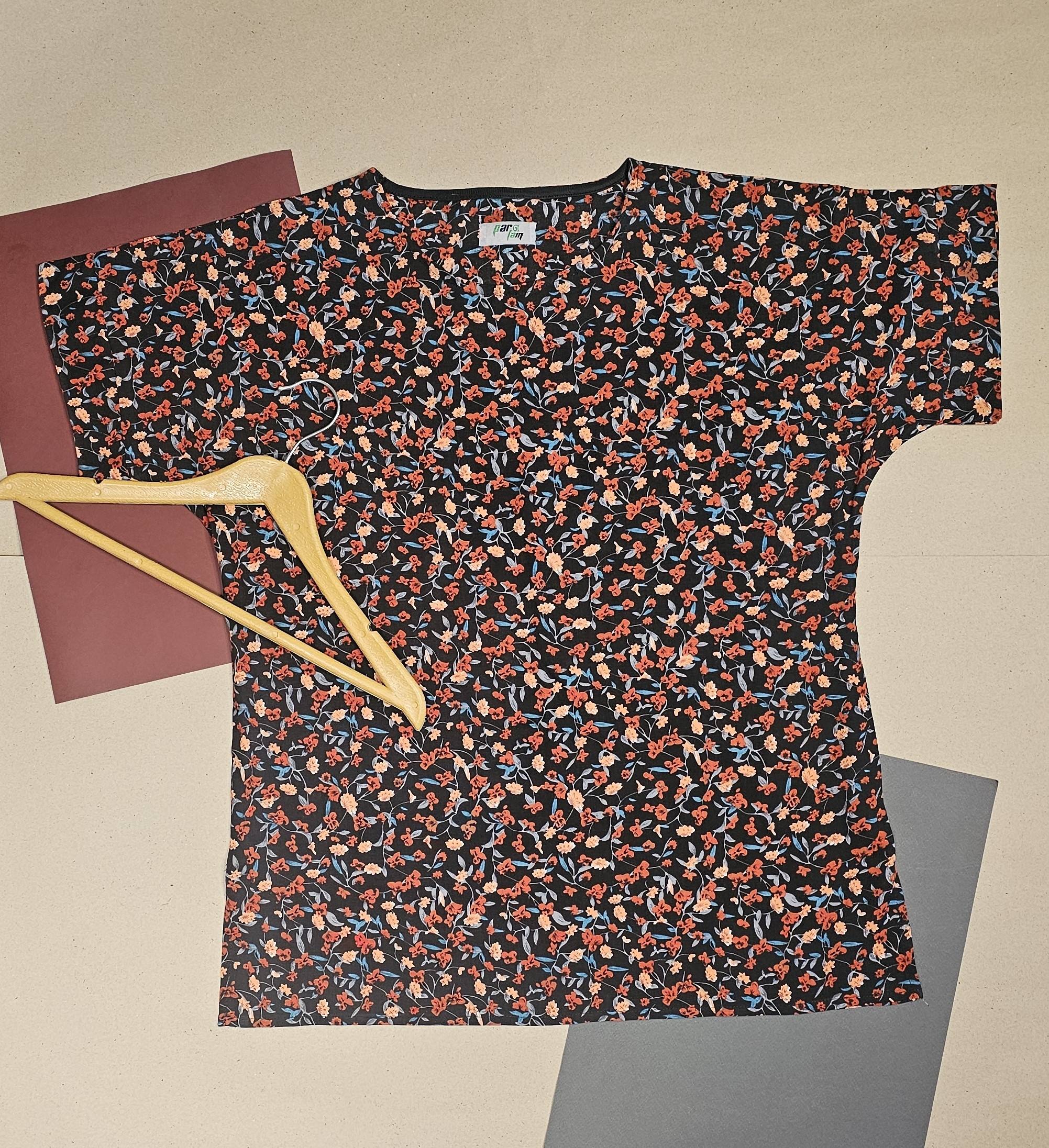 تیشرت زنانه نخی لینن گلدار طرح باغچه سبز