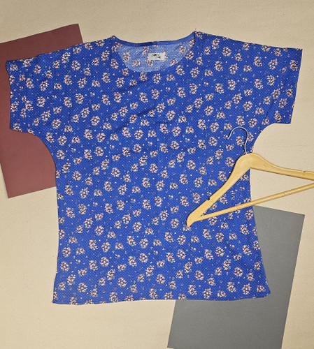 تیشرت زنانه نخی طرح اطلسی ابی