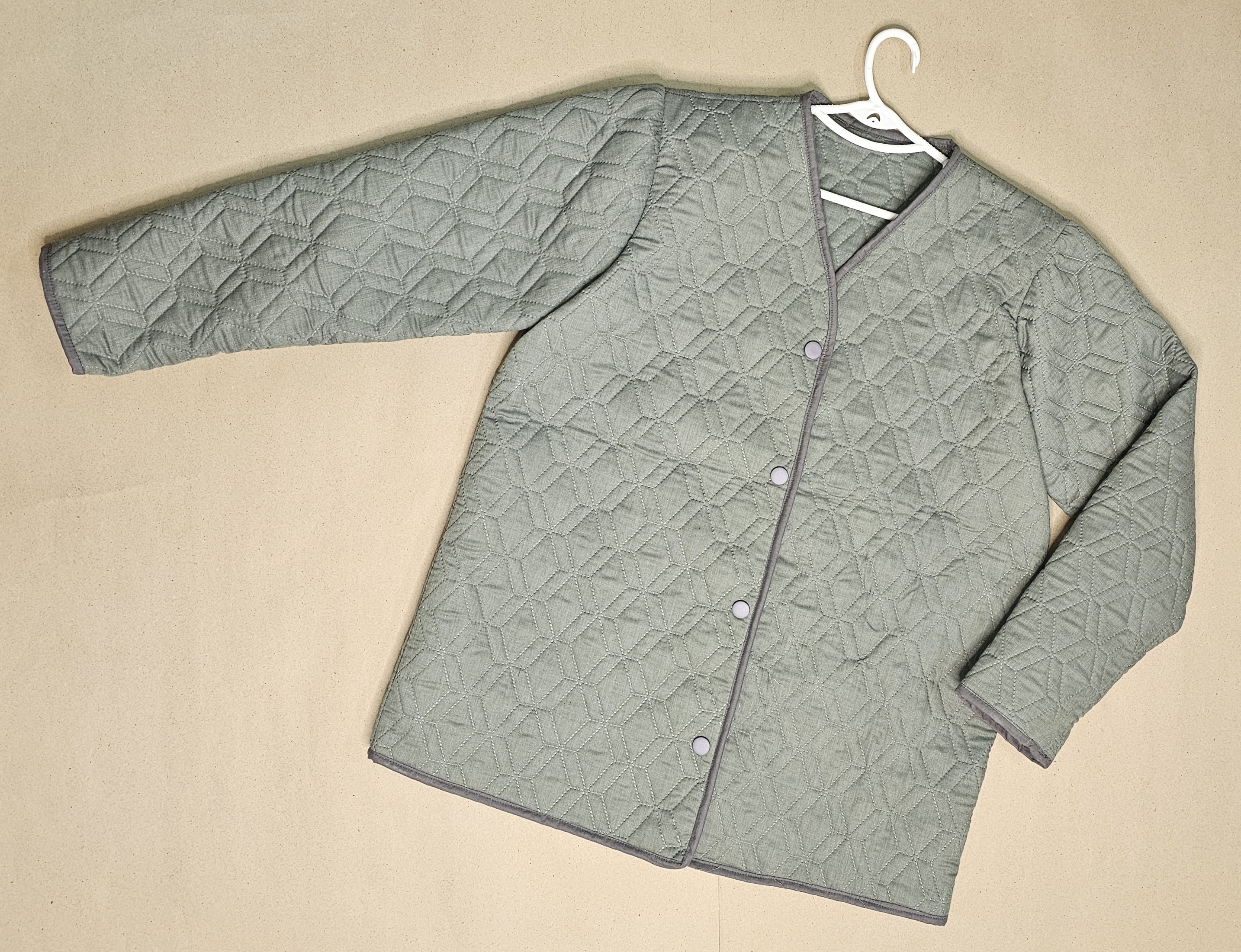 کت زنانه دولایه زمستانه با پشم شیشه سبز زیتونی طرح لوزی