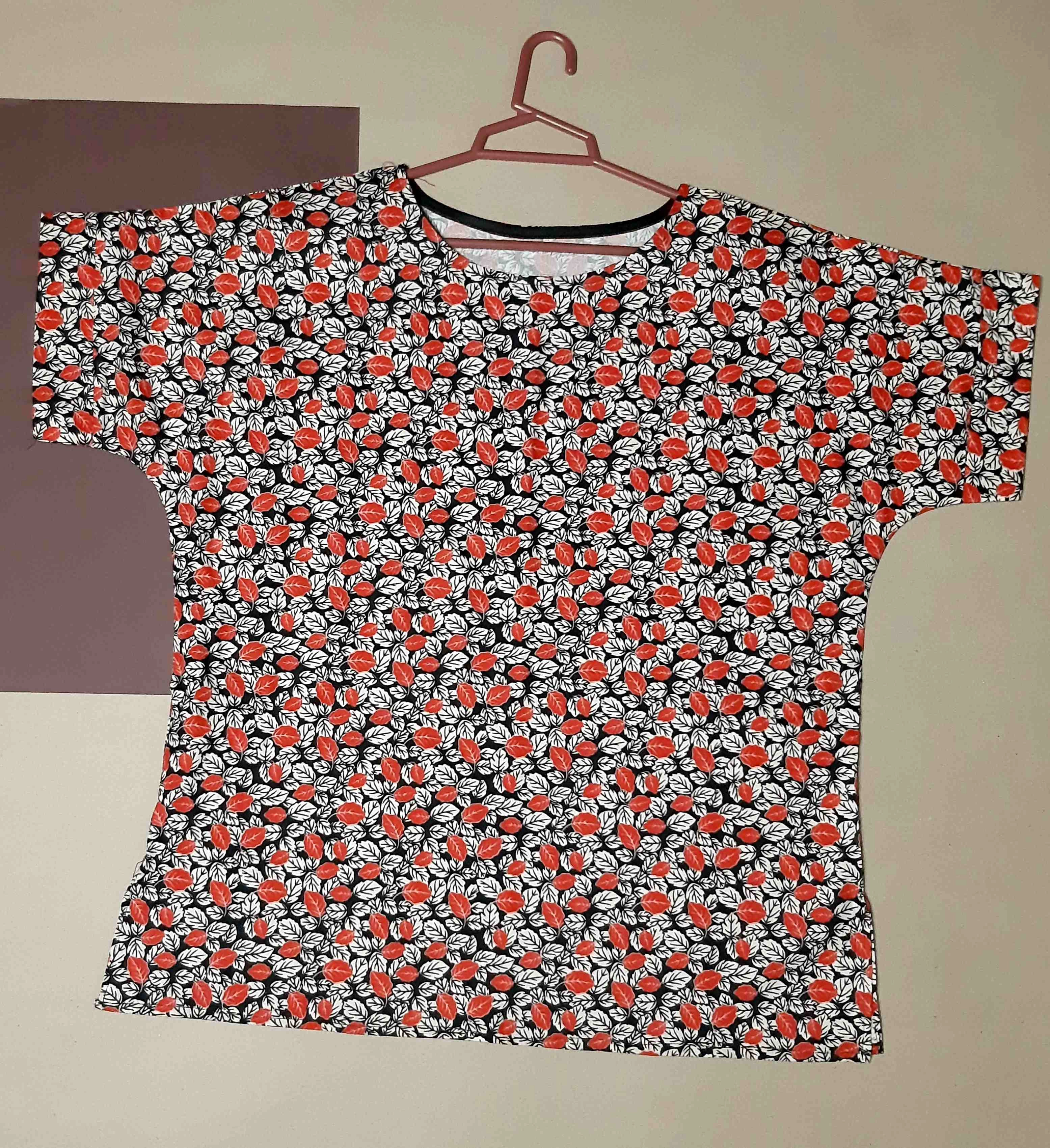 تیشرت زنانه نخی طرح شکوفه قرمز