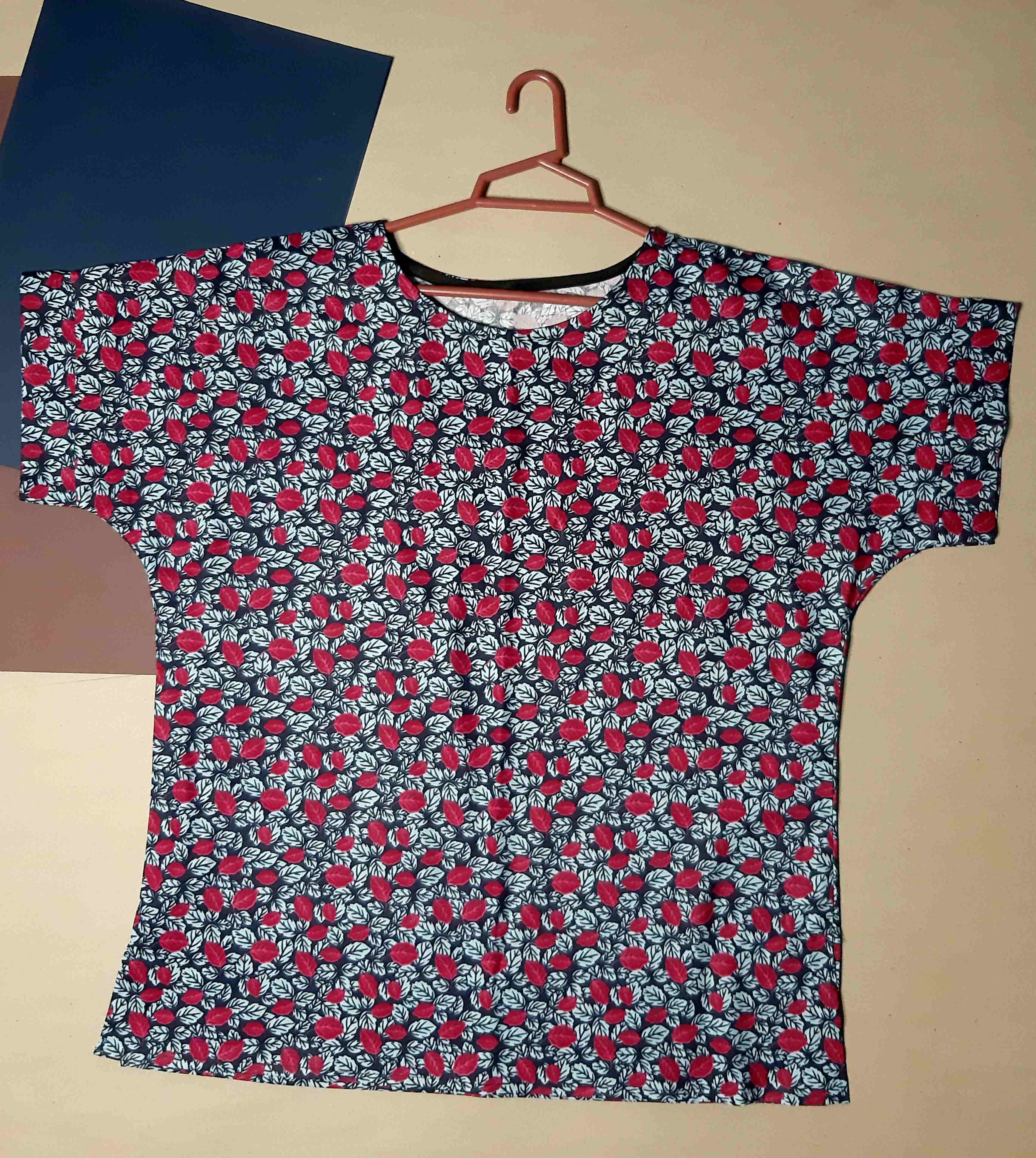 تیشرت زنانه نخی طرح خشتی قرمز پارچه خارجی