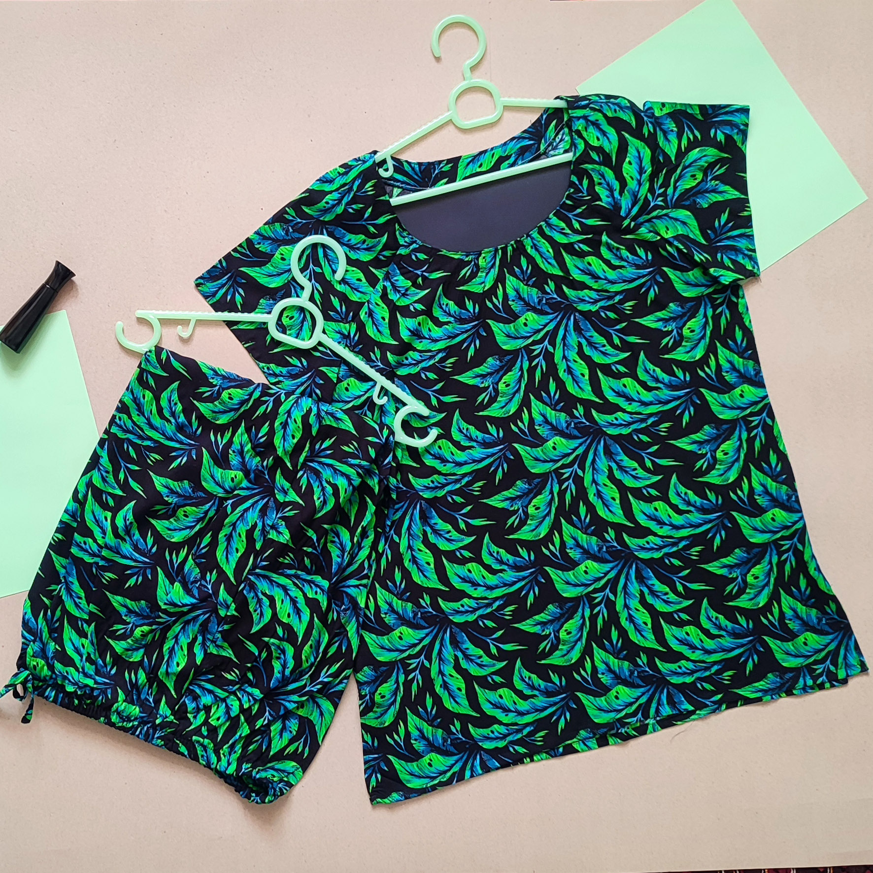 ست تیشرت و شلوارک طرح راشا سبز زنانه