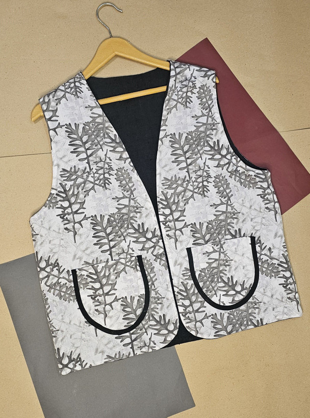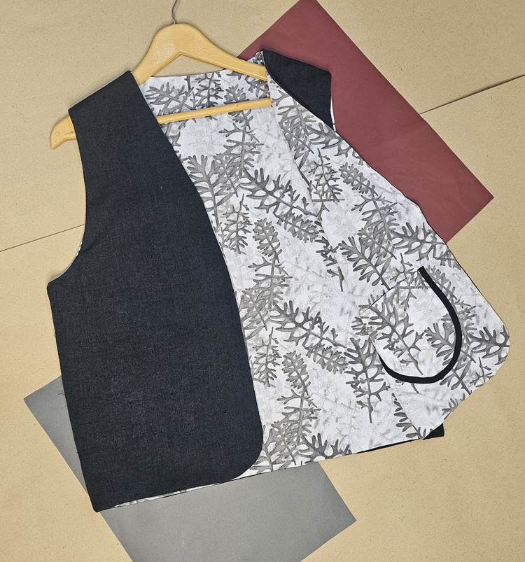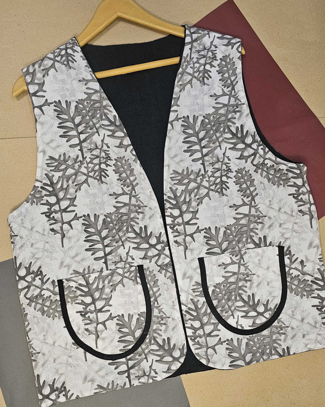 جلیقه نخی زنانه دو رو با دو لایه از دو پارچه کاملا متفاوت دوخته شده