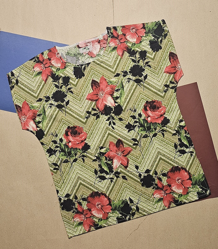 تیشرت زنانه نخی لینن گلدار طرح باغچه سبز از پارچه نخی طبیعی تهیه شده دارای طرحی خیال انگیز و زیبا و لطیف است
