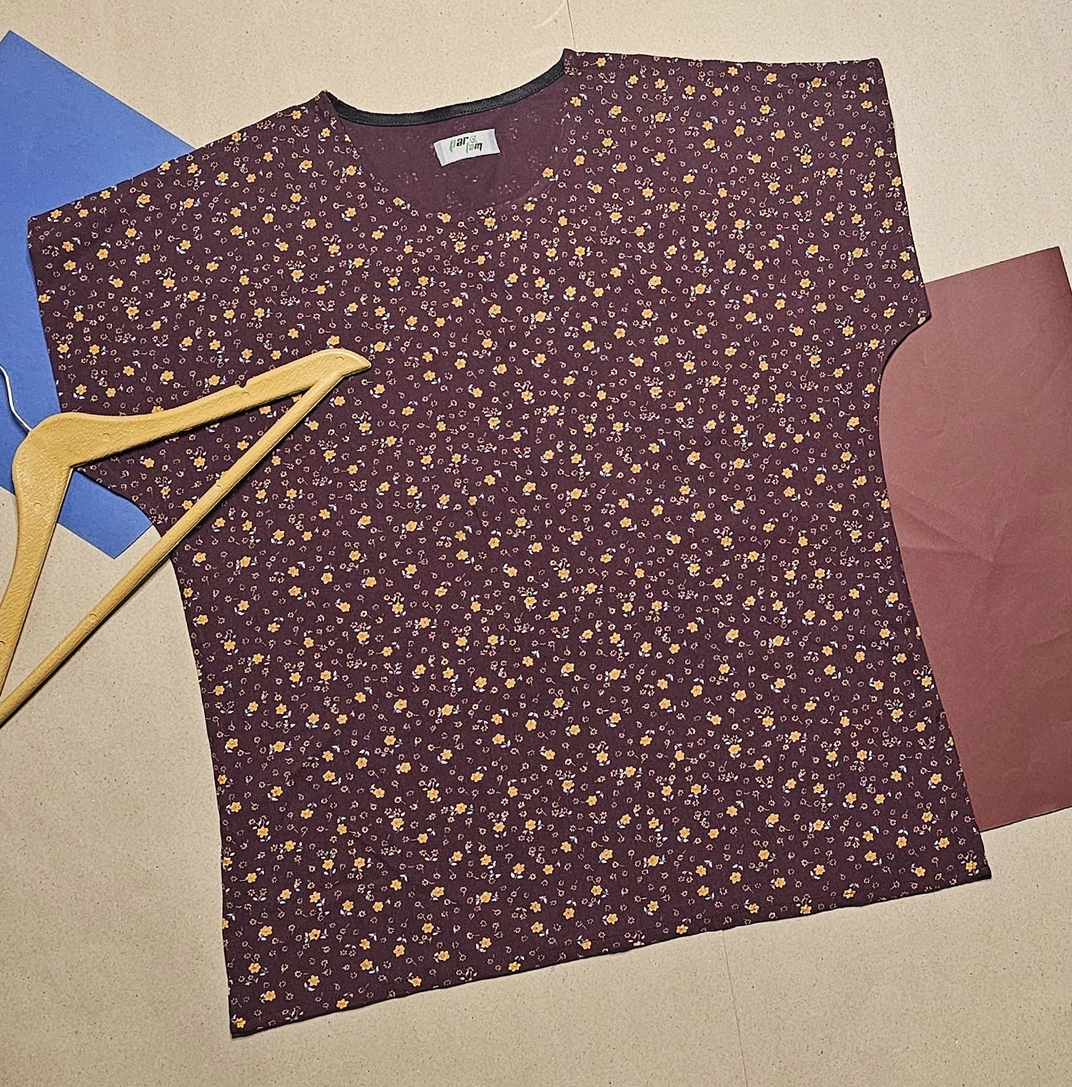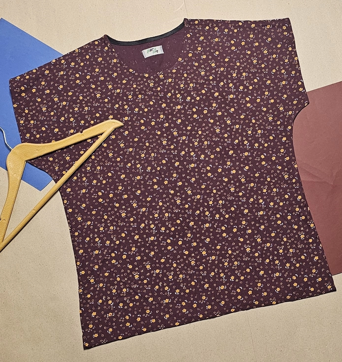 تیشرت زنانه نخی طرح گل ریز زرشکی