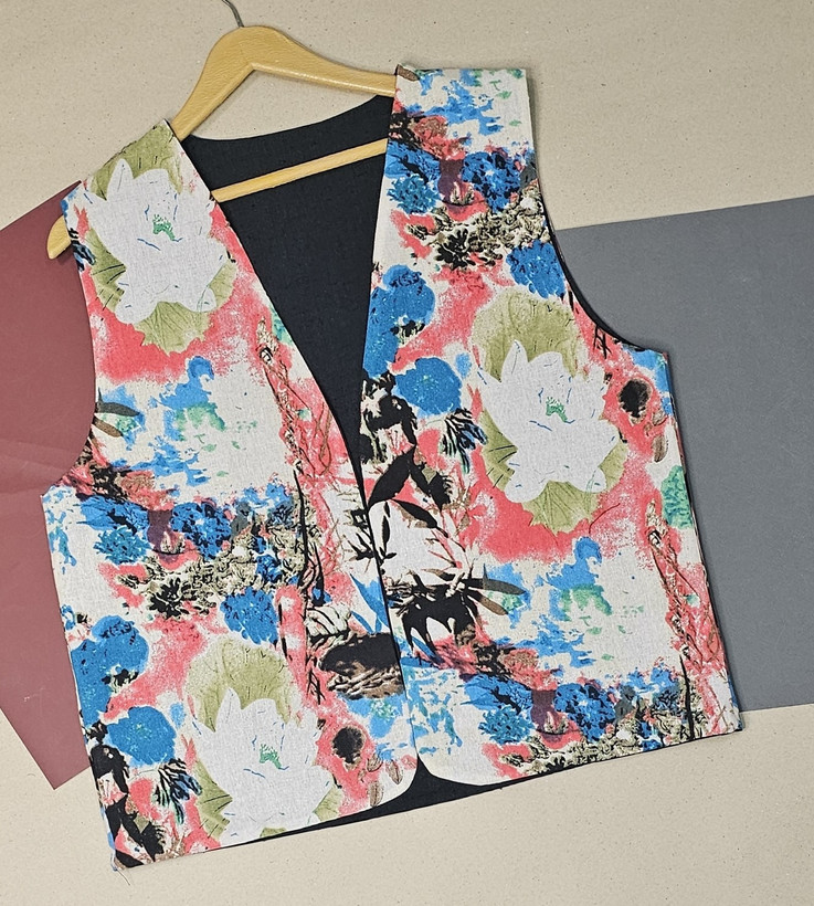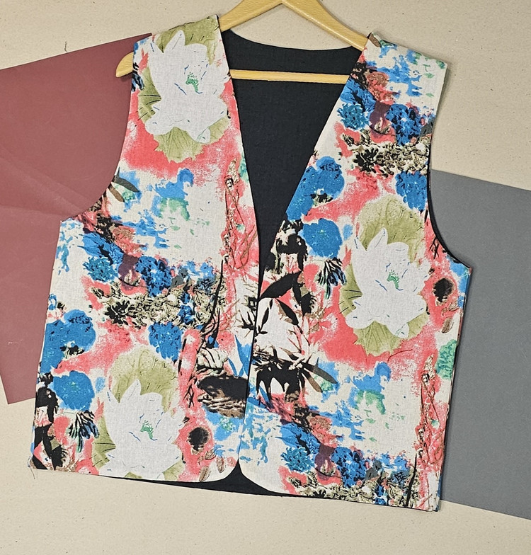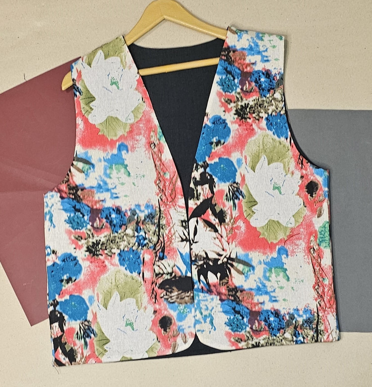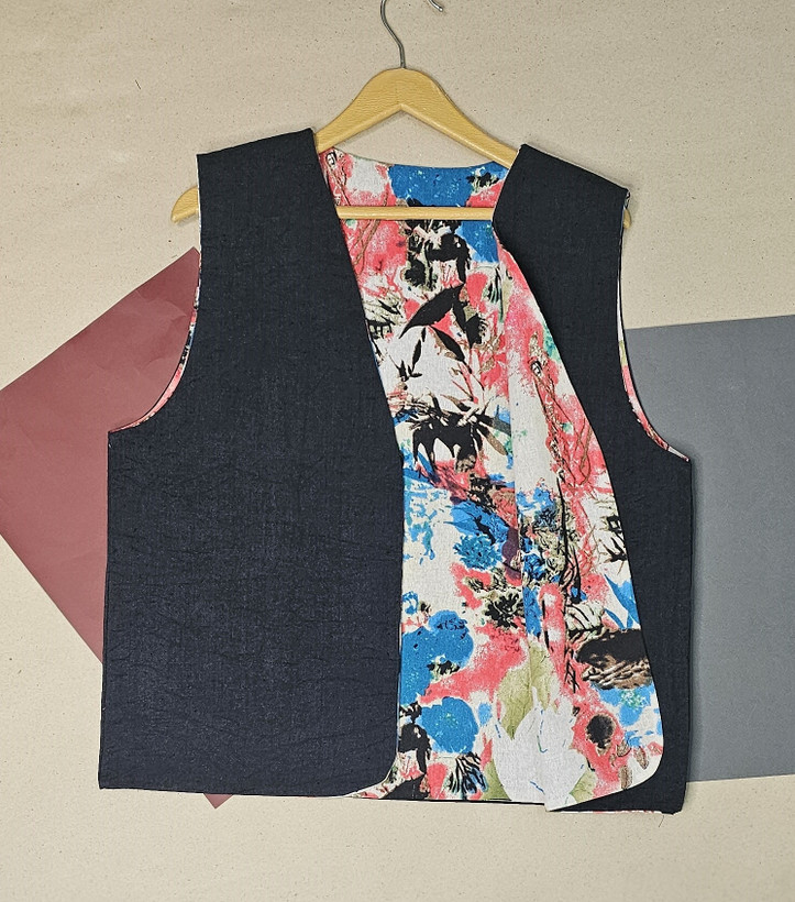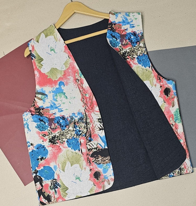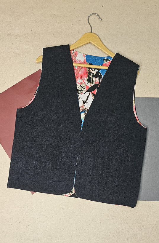 جلیقه نخی زنانه دو رو با دو لایه از دو پارچه کاملا متفاوت دوخته شده
