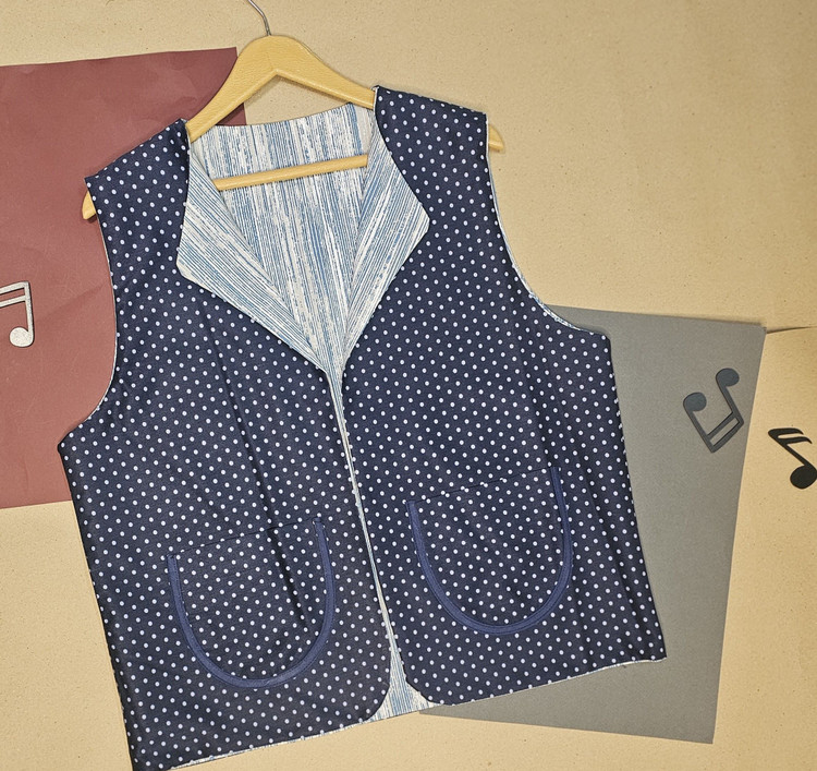 جلیقه زنانه دو رو یقه دار طرح درسا و یلدا سورمه ای