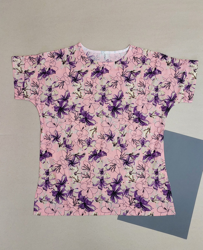 تیشرت نخی زنانه طرح گلایول صورتی