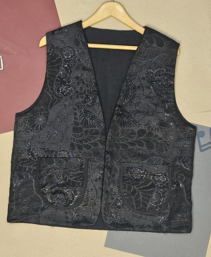 جلیقه زنانه دو رو دو لایه ژاکارد طرح طاووس مشکی
