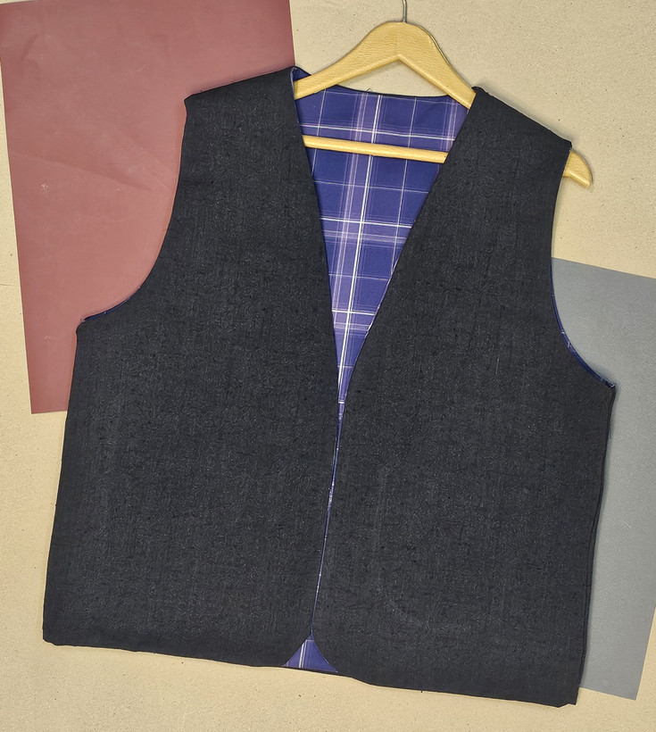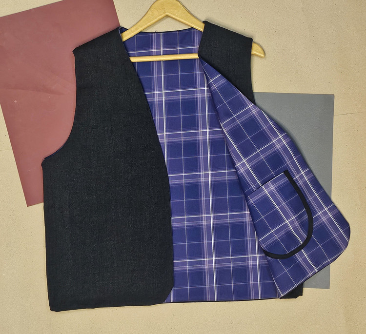جلیقه نخی زنانه دو رو با دو لایه از دو پارچه کاملا متفاوت دوخته شده