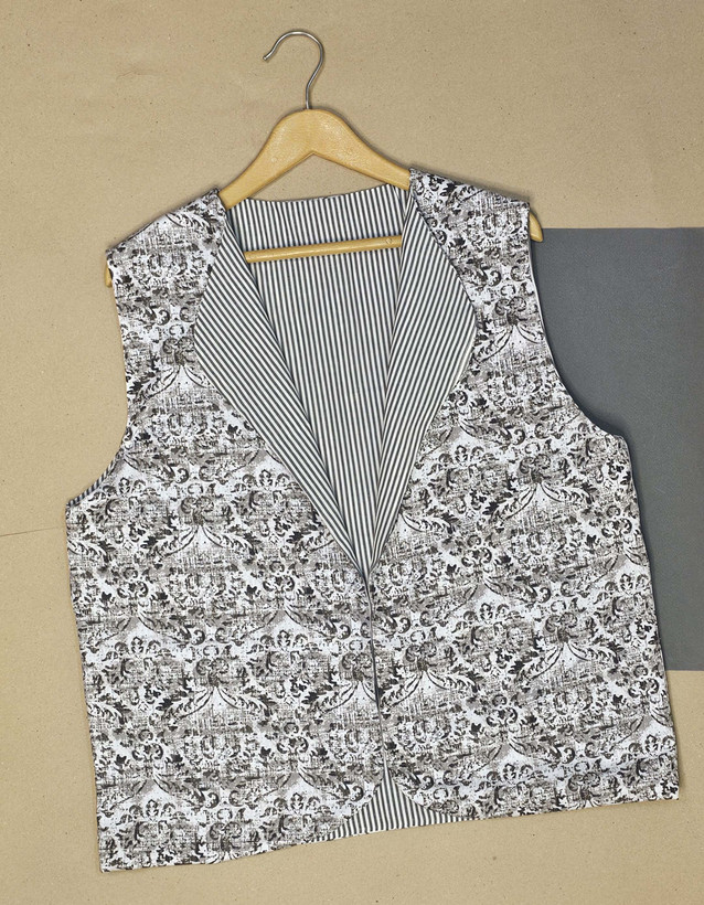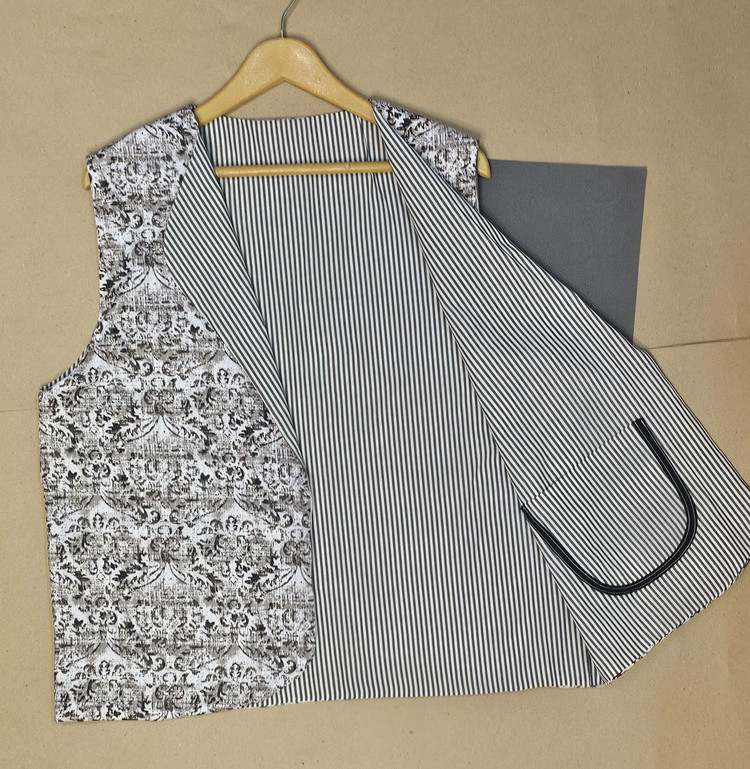 جلیقه زنانه دو رو یقه دار طرح ترنج شکلاتی