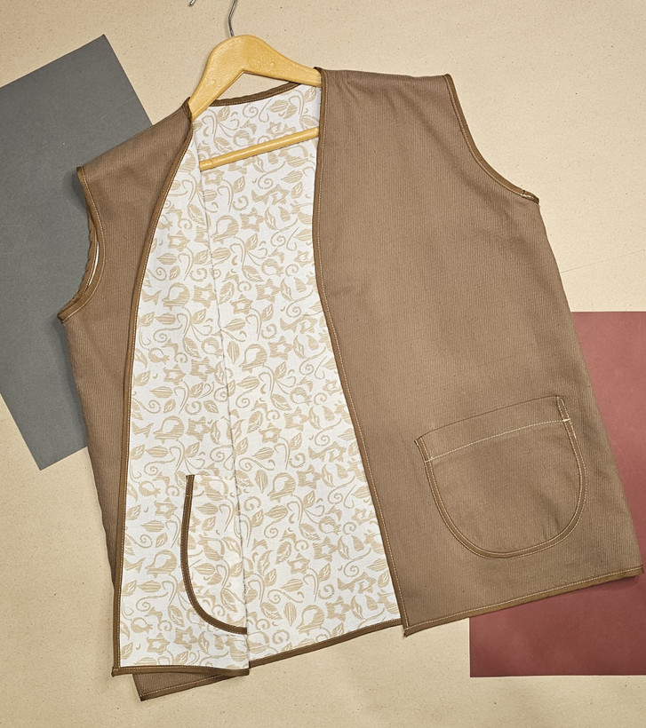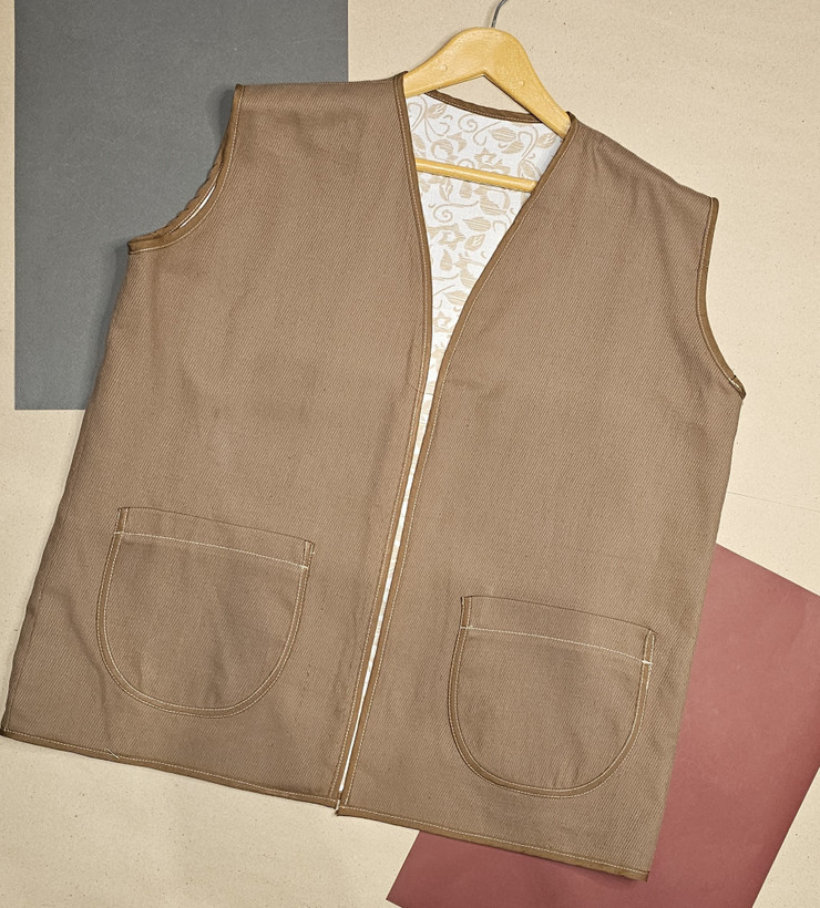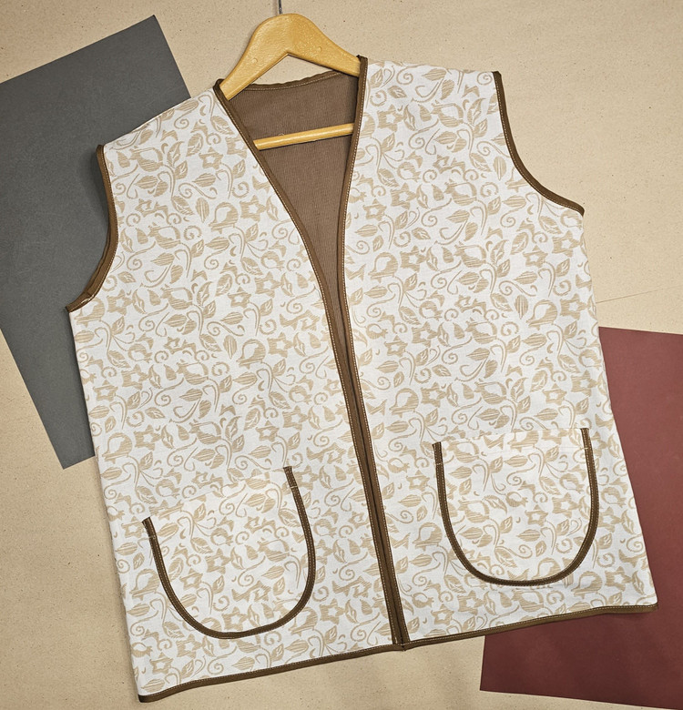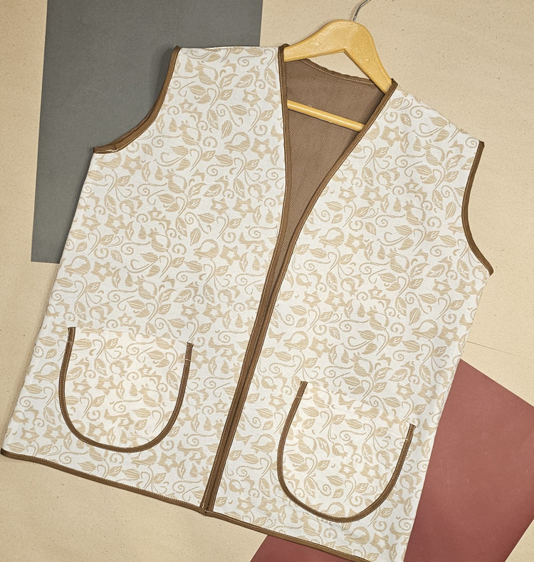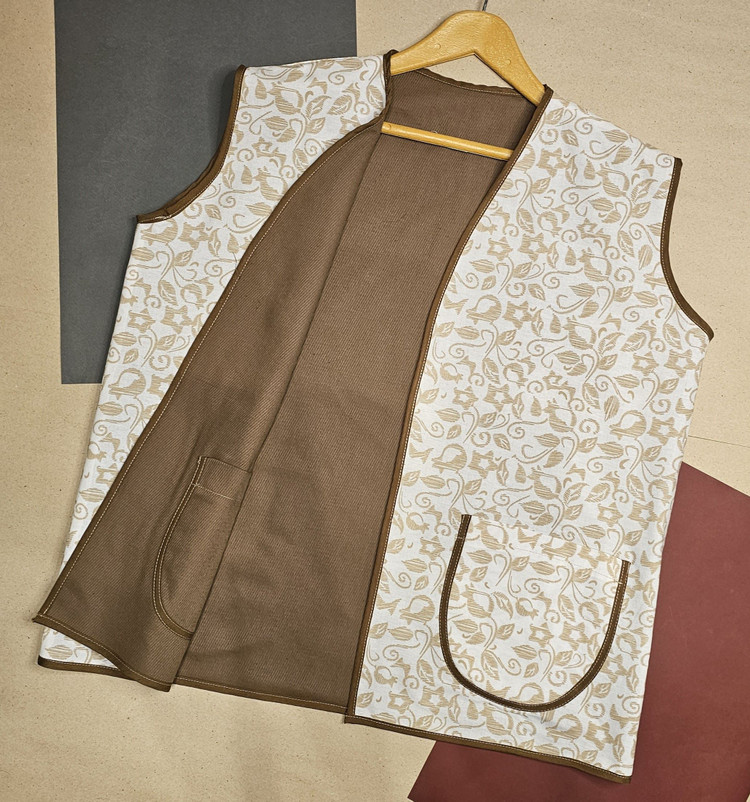 جلیقه نخی زنانه دو رو با دو لایه از دو پارچه کاملا متفاوت دوخته شده