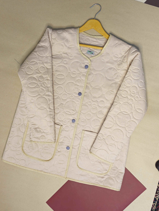 کت طرح لوزی زنانه دولایه زمستانه با پشم شیشه سورمه ای