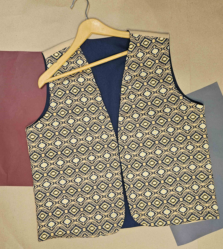 جلیقه نخی زنانه دو رو با دو لایه از دو پارچه کاملا متفاوت دوخته شده