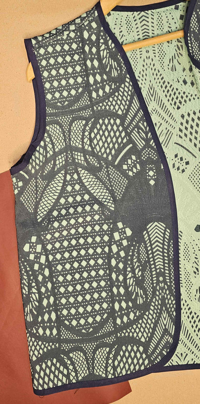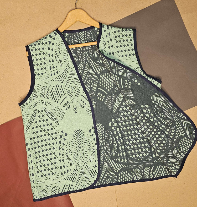 جلیقه ژاکارد تک لایه دو رویه از پارچه مرغوب ژاکارد نخی خارجی دوخته شده با نوار دوزی مناسب و دو رو ان قابل استفاده است