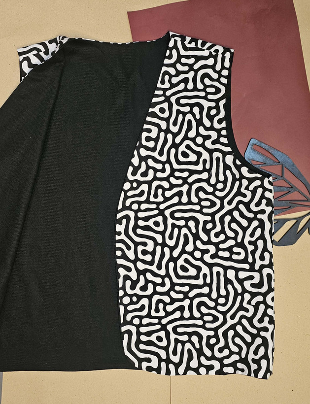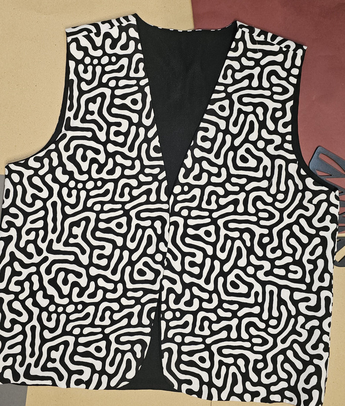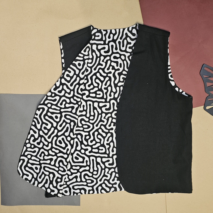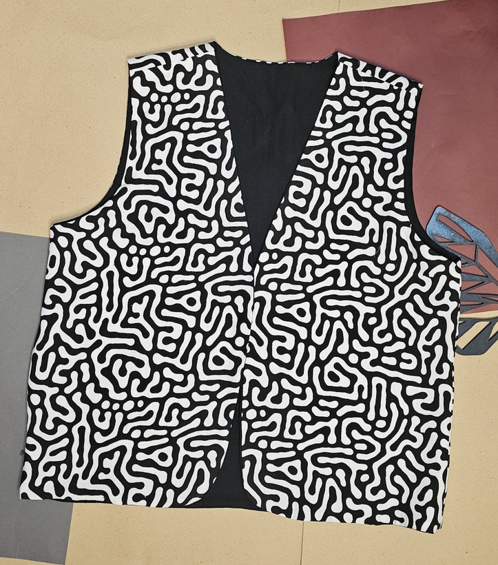 جلیقه نخی زنانه دو رو با دو لایه از دو پارچه کاملا متفاوت دوخته شده