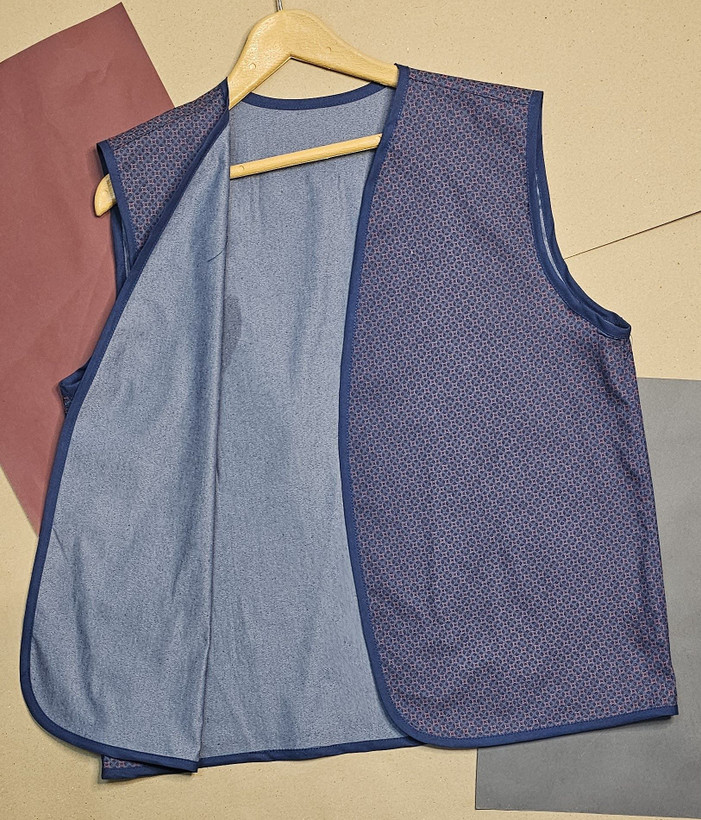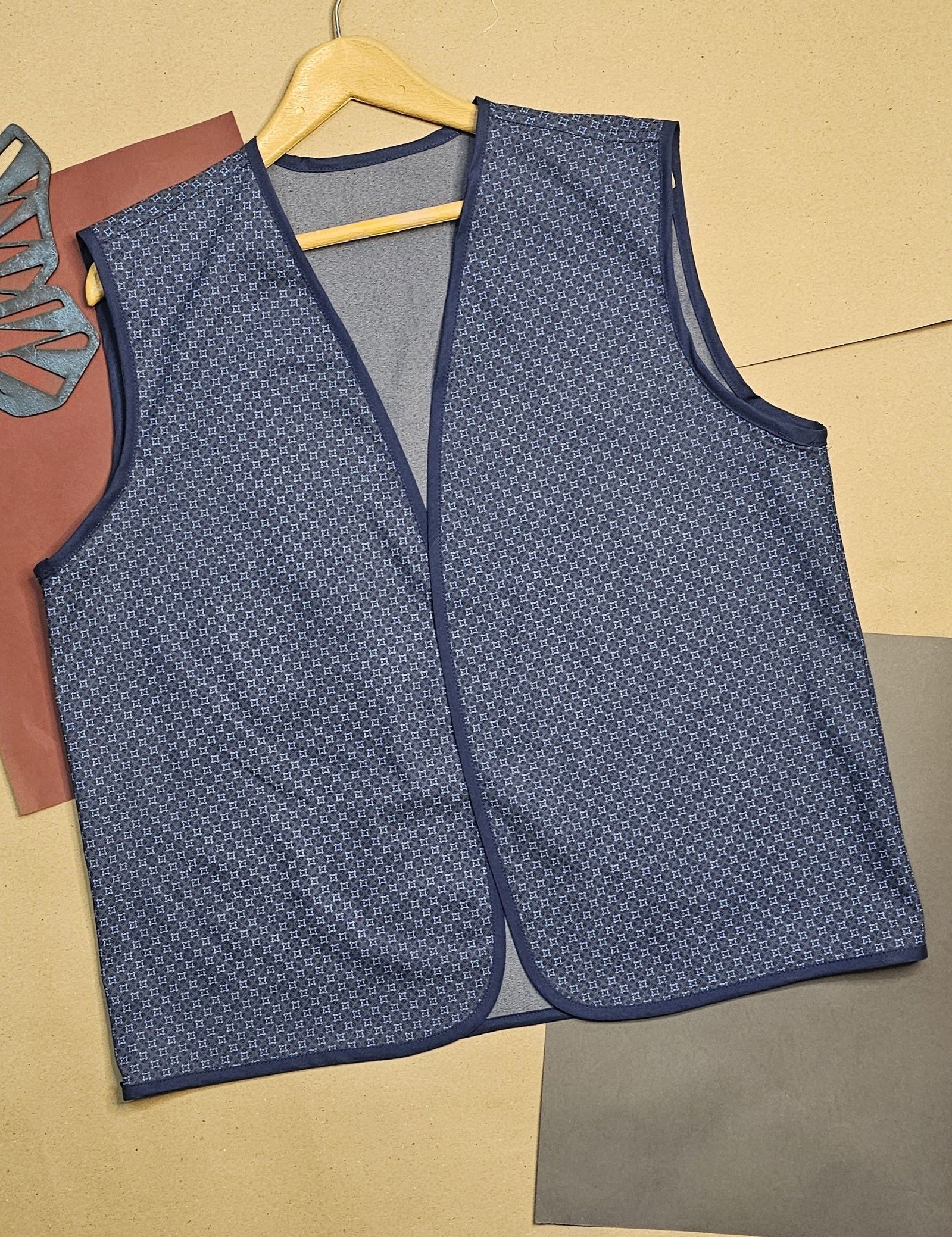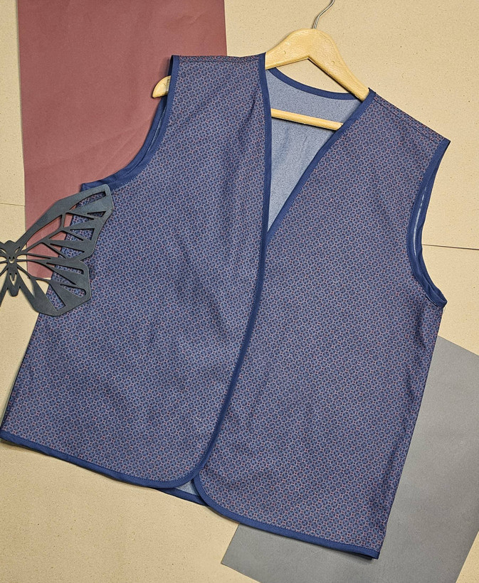 جلیقه جین تک لایه دو رویه از پارچه مرغوب کتان جین نخی خارجی دوخته شده با نوار دوزی مناسب و دو رو ان قابل استفاده است