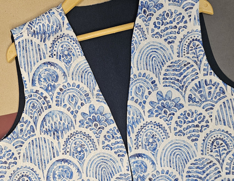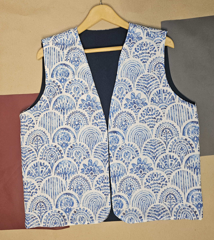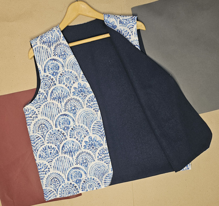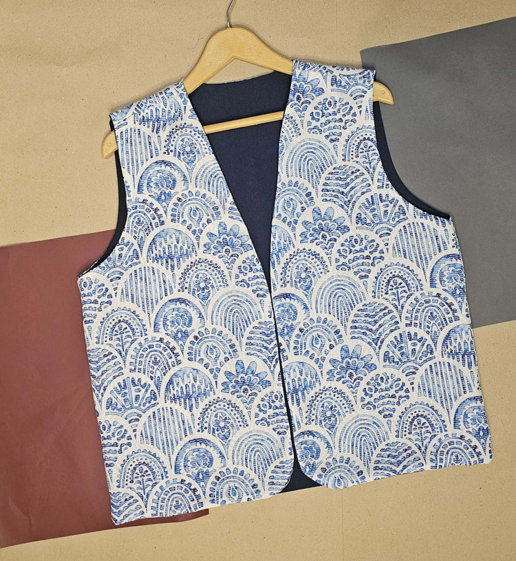 جلیقه ژاکارد زنانه دو رو طرح طاووس سبز آبی