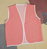 جلیقه ژاکارد دو رو تک لایه طرح گلسار قرمز و سفید
