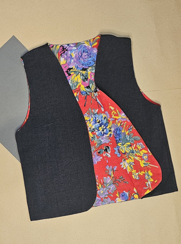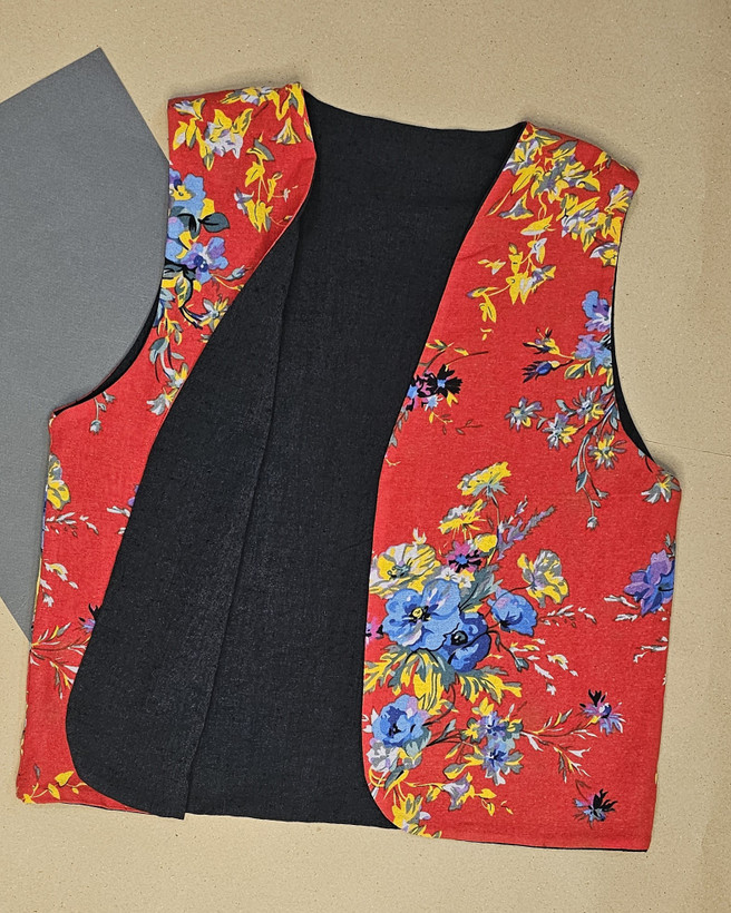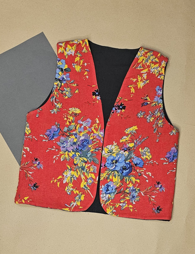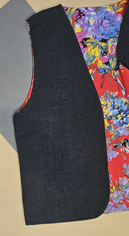 جلیقه نخی زنانه دو رو با دو لایه از دو پارچه کاملا متفاوت دوخته شده