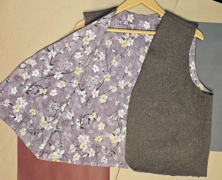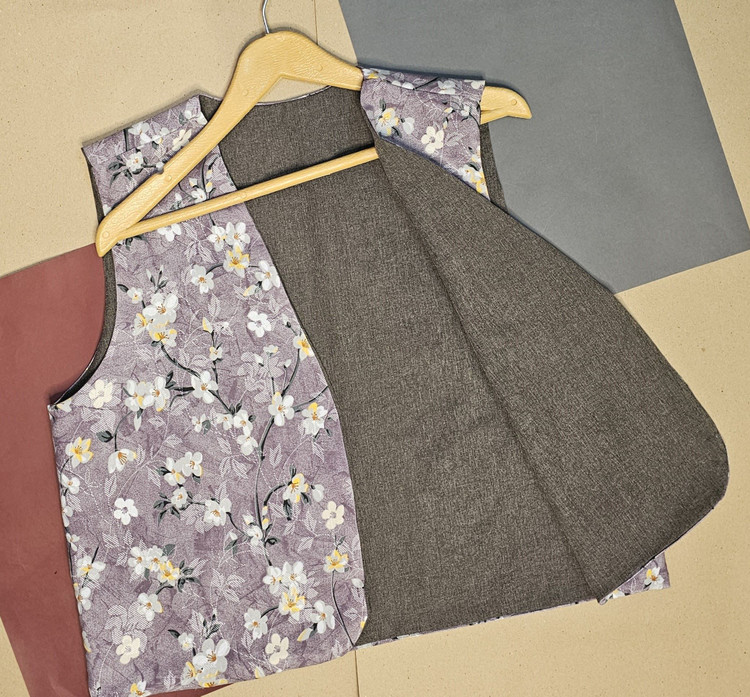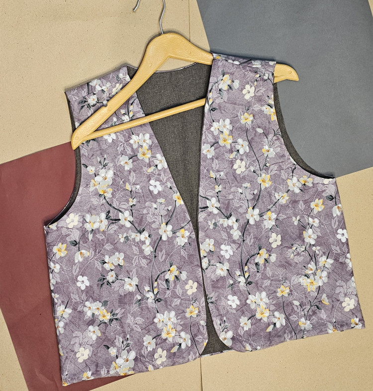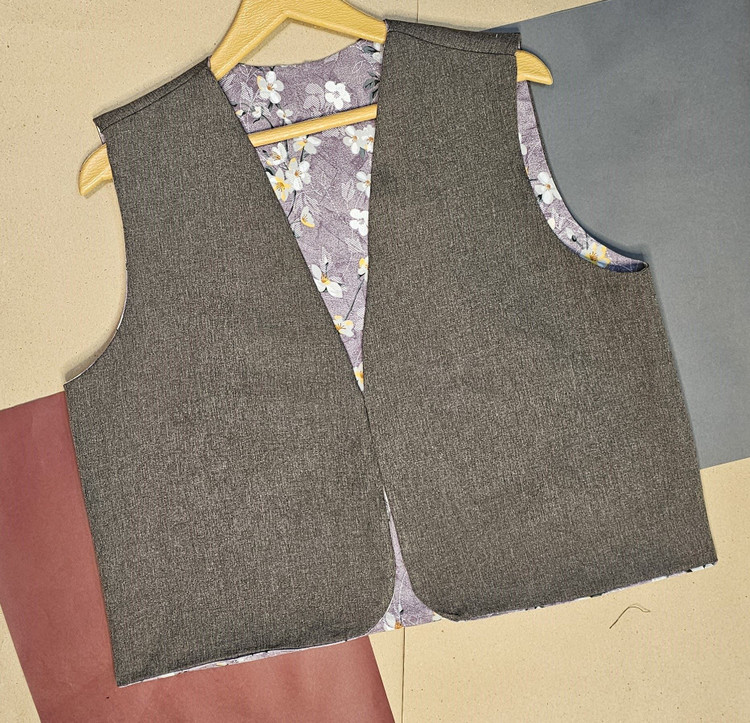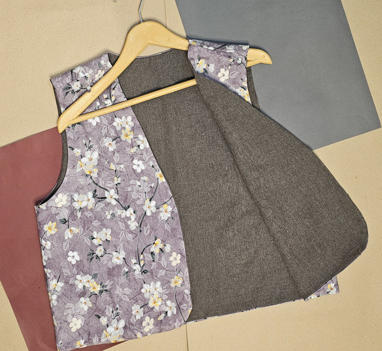 جلیقه نخی زنانه دو رو با دو لایه از دو پارچه کاملا متفاوت دوخته شده