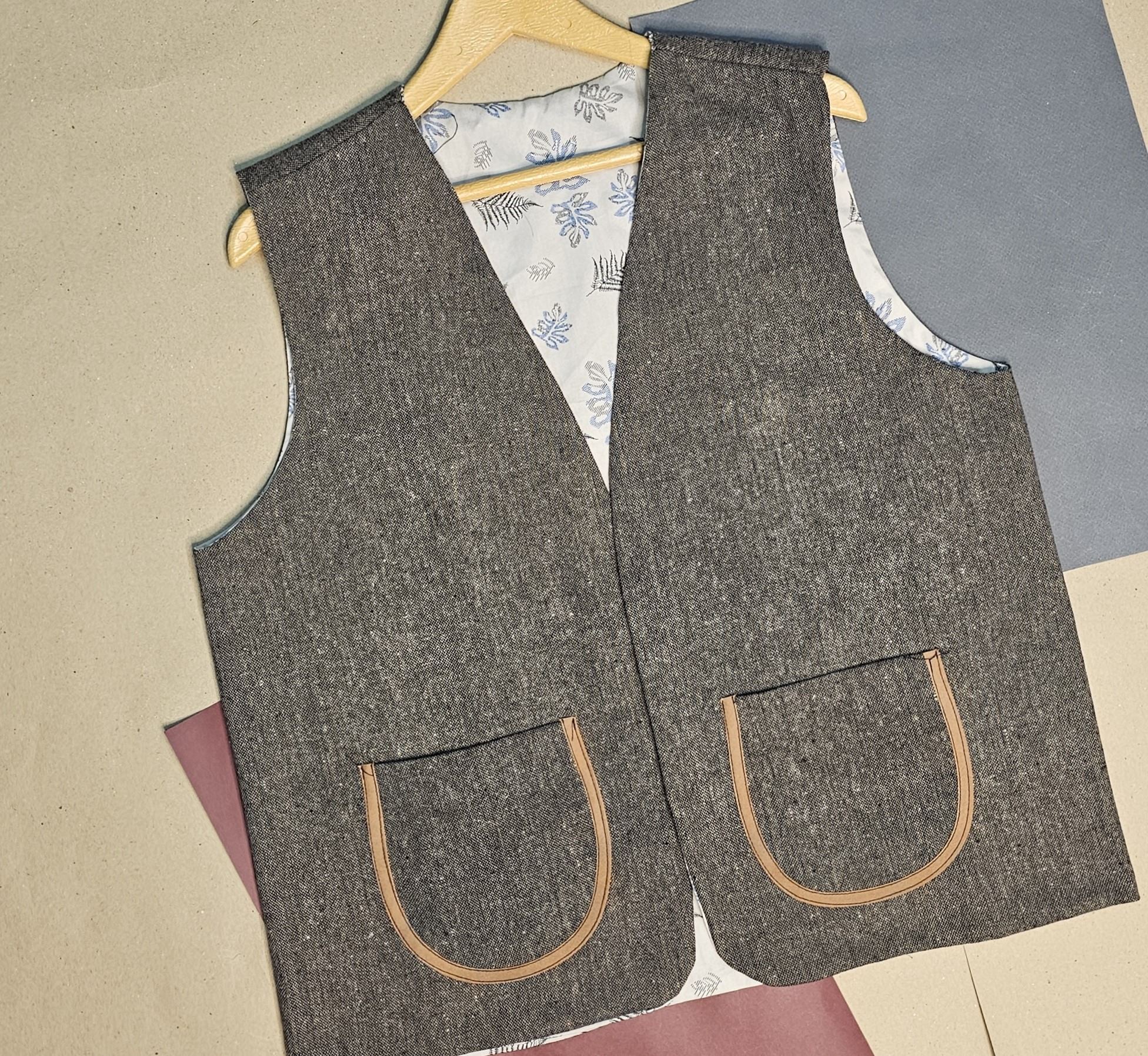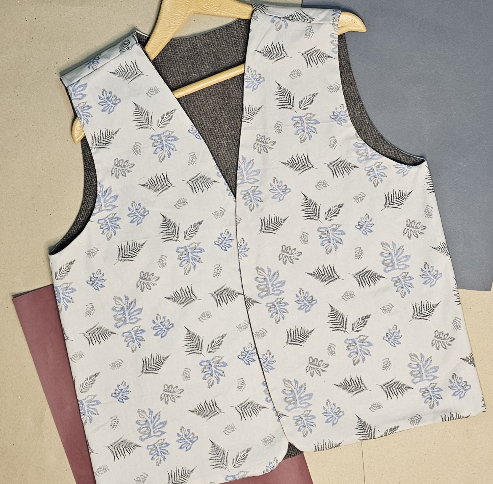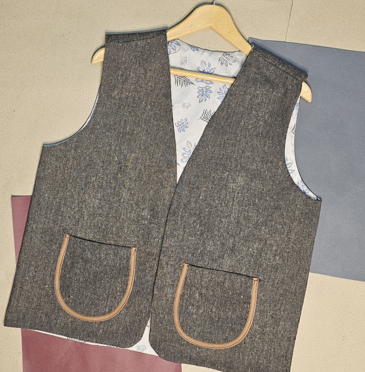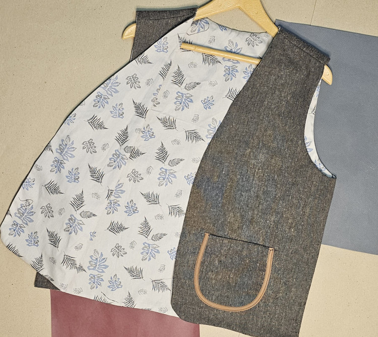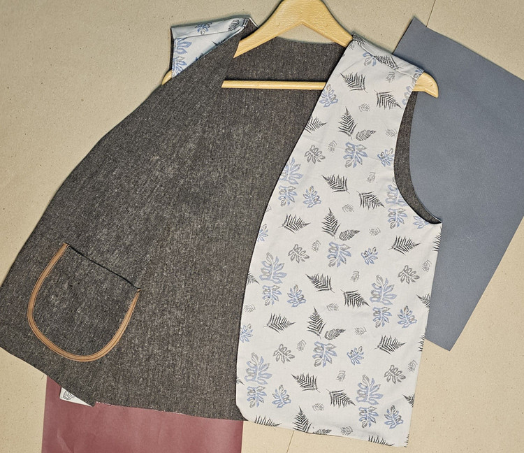 جلیقهی دوروی نقش بنجامین از تولیدات پرفام، روایتگر مسیرهاییست که سنت و مدرنیته را به هم پیوند میدهند. رویهی اصلی از کتان نخی با ترکیب نقوش هندسی الهامگرفته از بافتها و نشانههای بومی طراحی شده و رویهی دوم از پارچه فاستونی با بافت ویژه که ظاهری مینیمال، رسمیتر و شهری به لباس میبخشد.