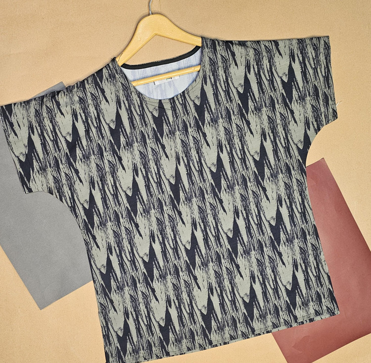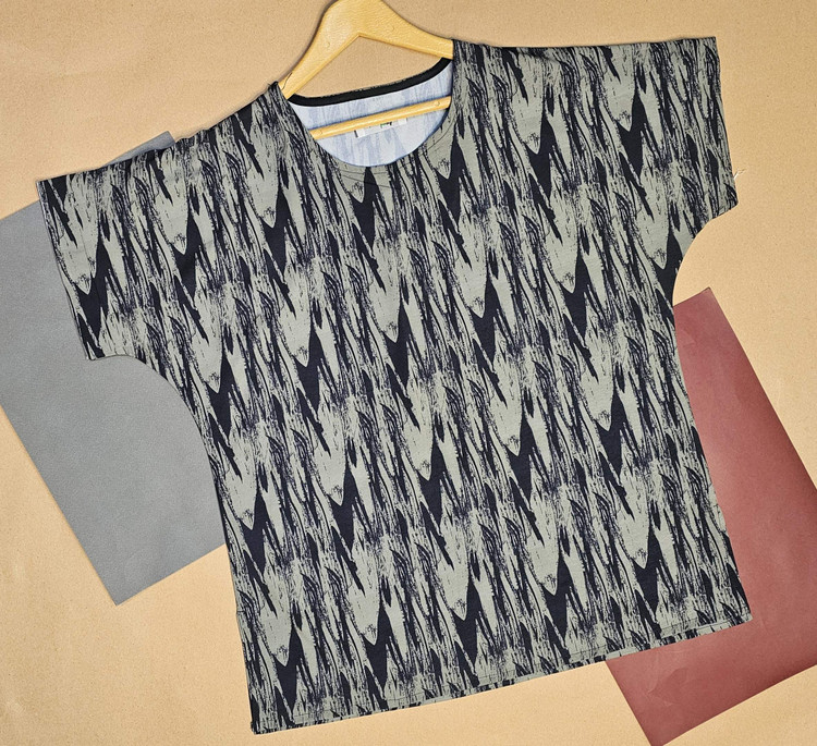 تیشرت سایهنگار از جنس کرپ بوگاتی، سبک، خوشفرم و مناسب استفاده روزمره و استایلهای مینیمال. بافت خاص پارچه، ایستایی زیبا و حس راحتی را همزمان فراهم میکند.