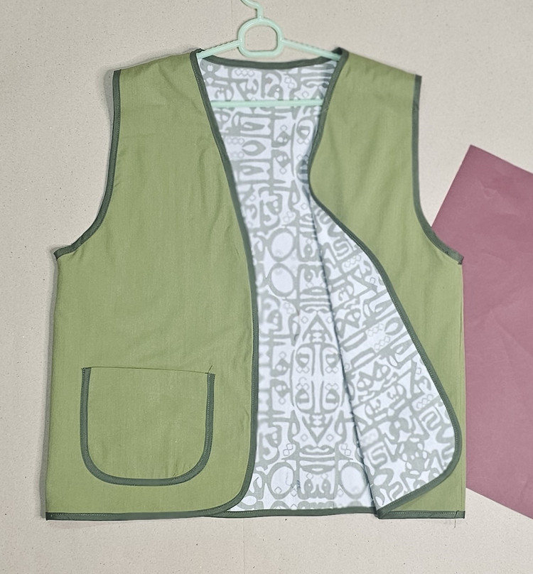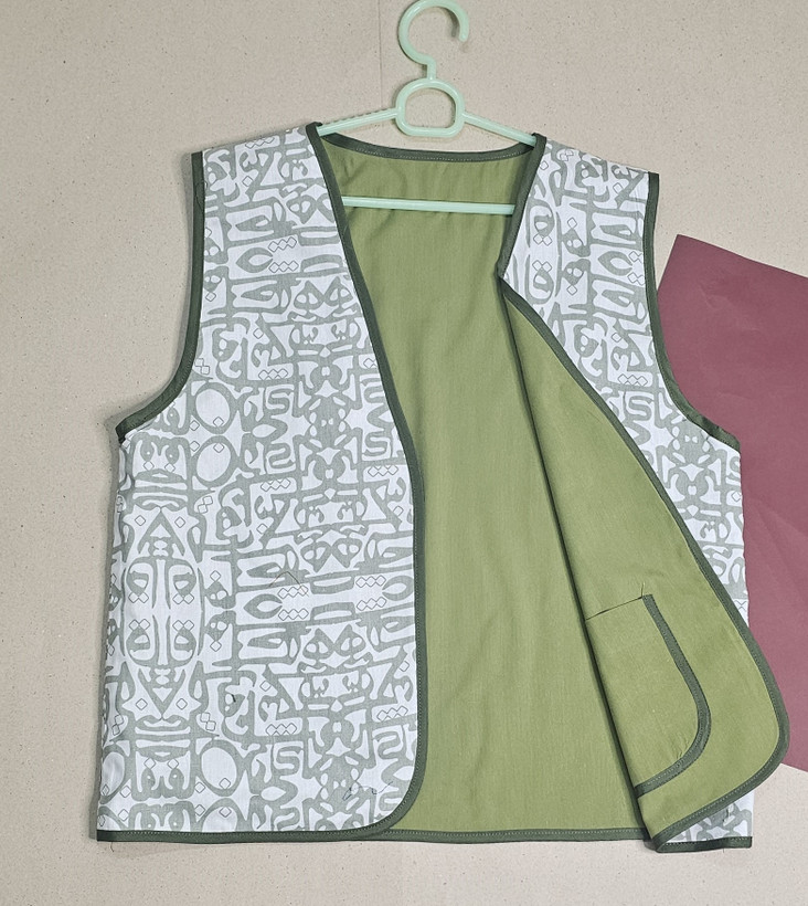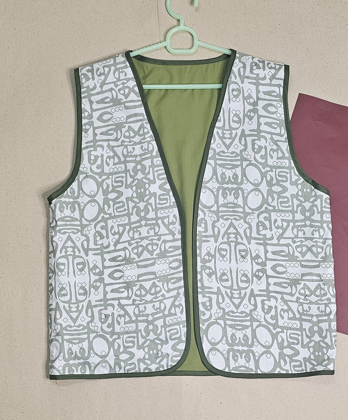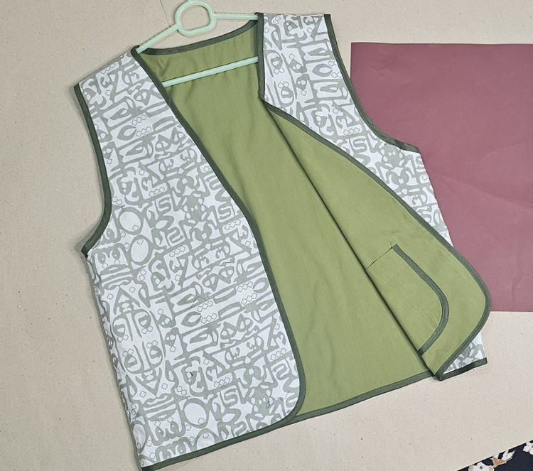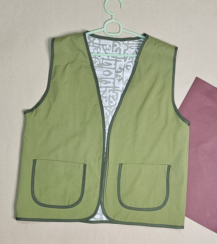 جلیقه نخی زنانه دو رو با دو لایه از دو پارچه کاملا متفاوت دوخته شده