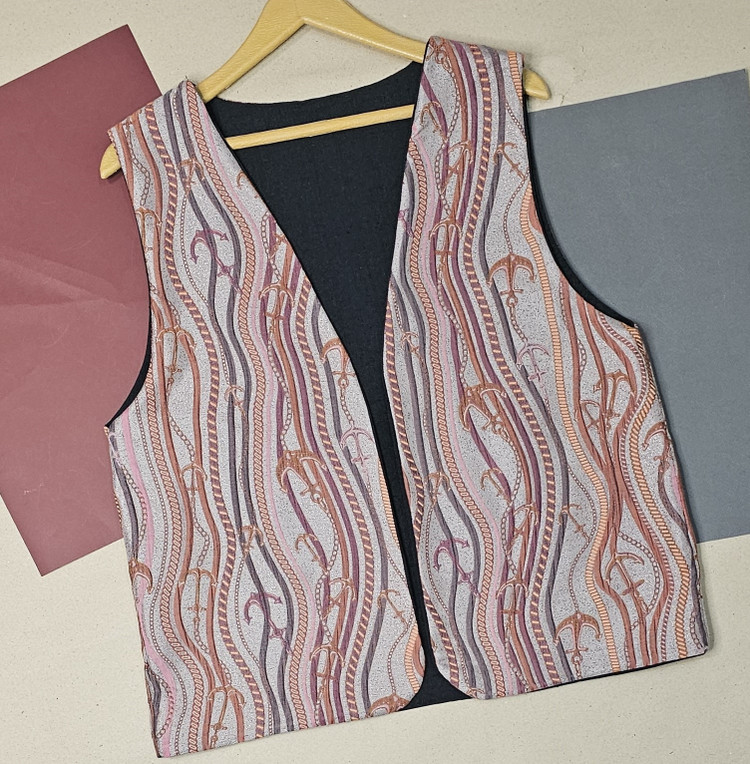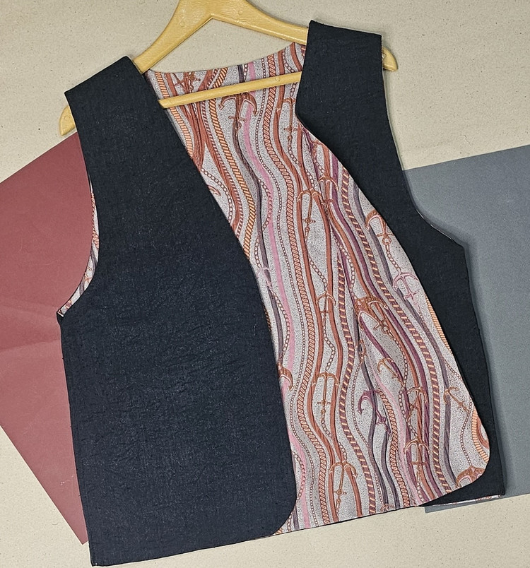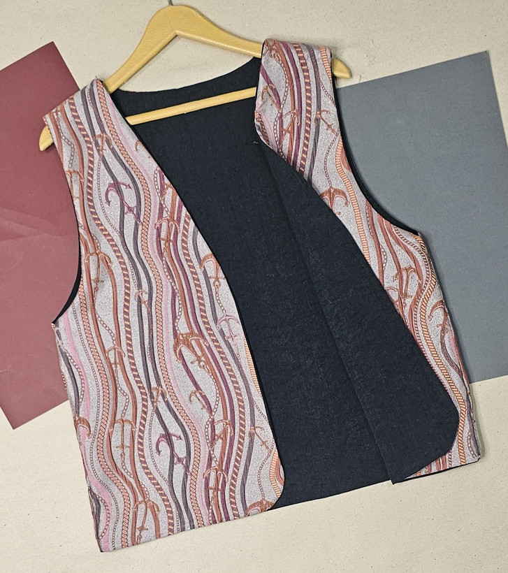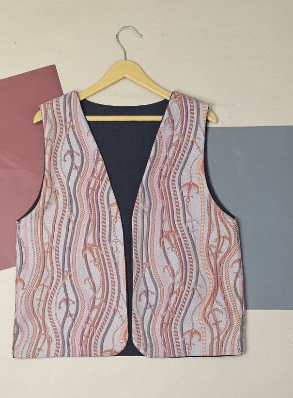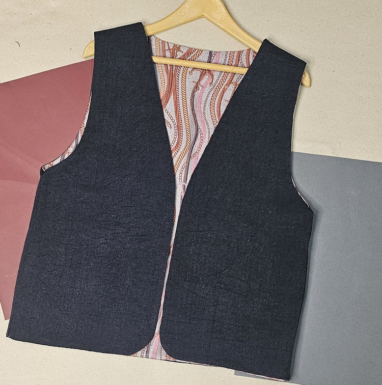 جلیقه نخی زنانه دو رو با دو لایه از دو پارچه کاملا متفاوت دوخته شده
