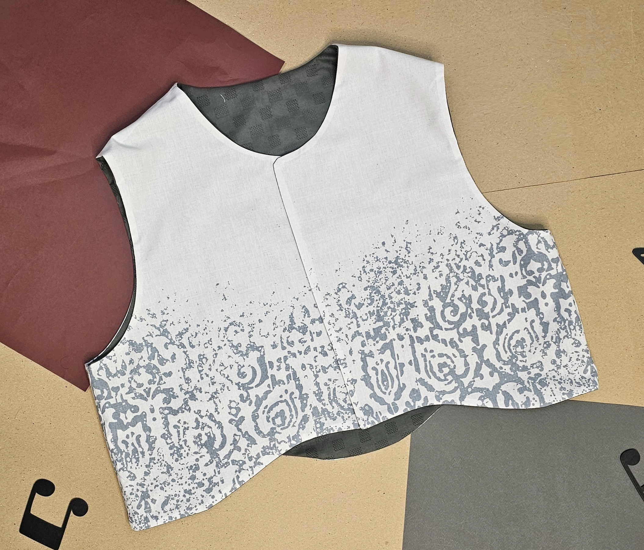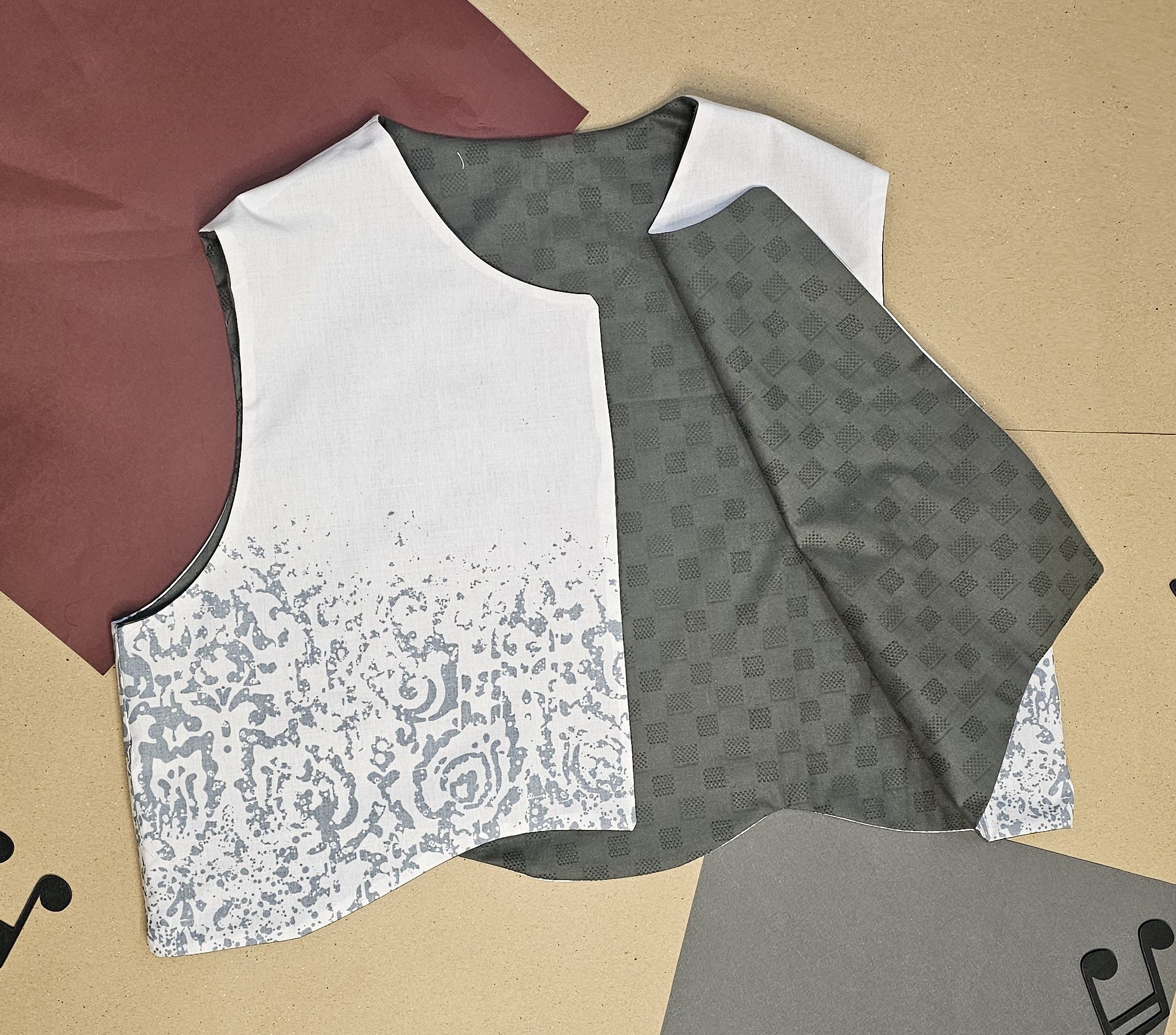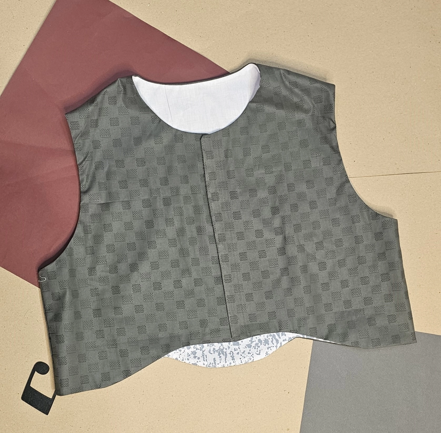 جلیقه نیم تنه زنانه دو رو با دو لایه از دو پارچه کاملا متفاوت دوخته شده