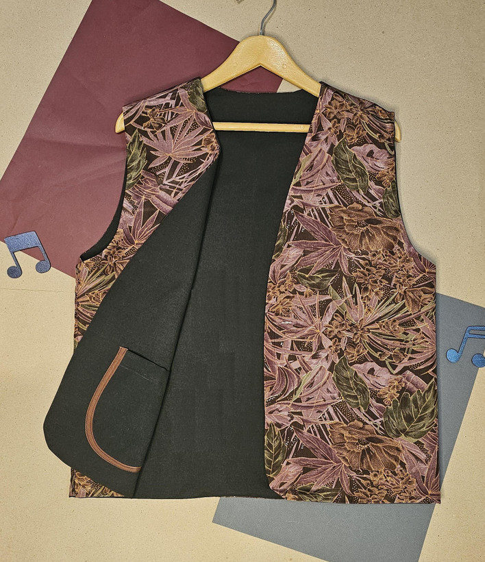 جلیقه نخی زنانه دو رو با دو لایه از دو پارچه کاملا متفاوت دوخته شده