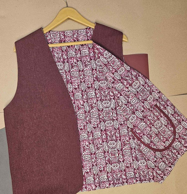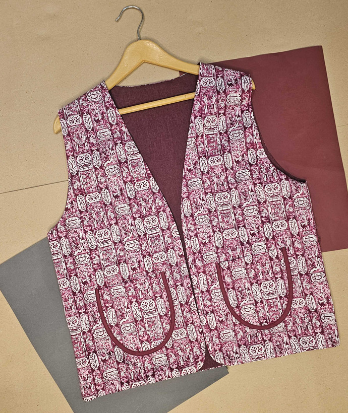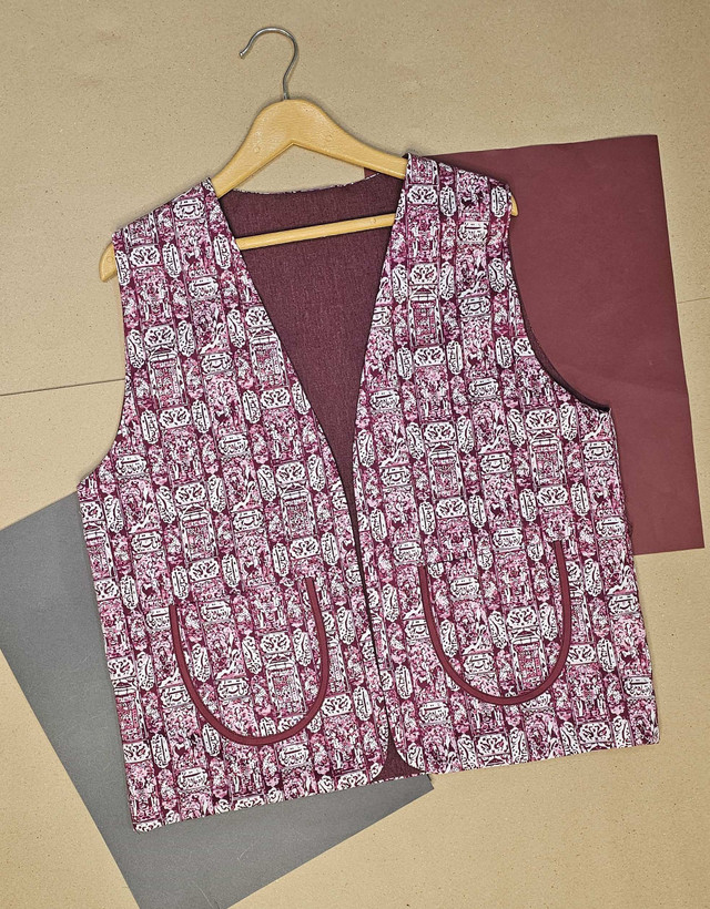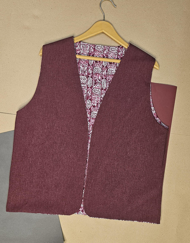 جلیقه نخی زنانه دو رو با دو لایه از دو پارچه کاملا متفاوت دوخته شده