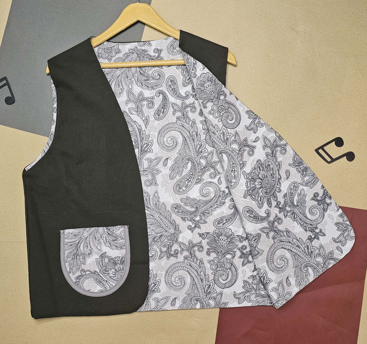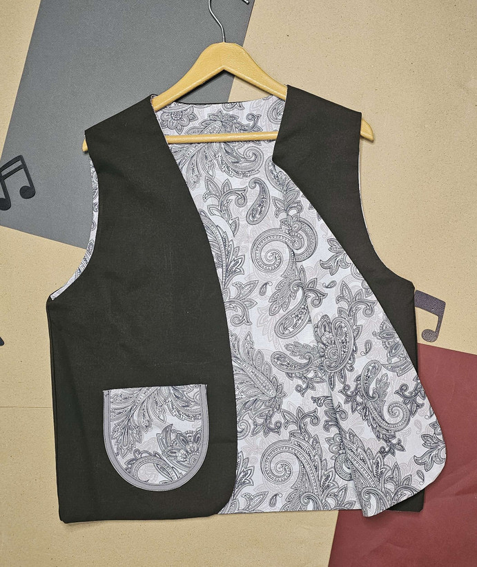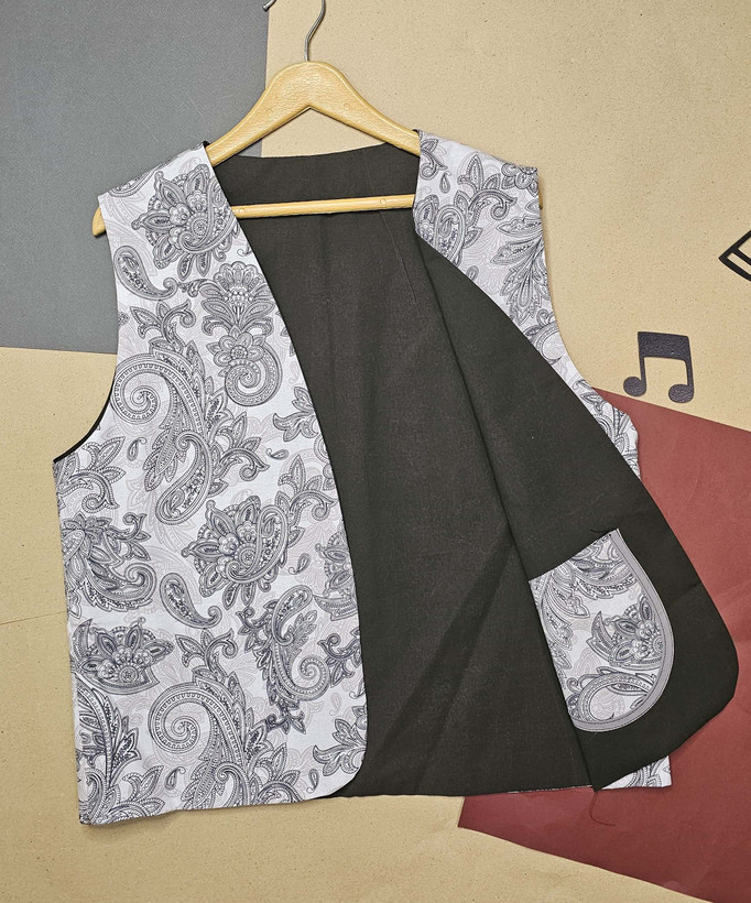 جلیقه نخی زنانه دو رو با دو لایه از دو پارچه کاملا متفاوت دوخته شده