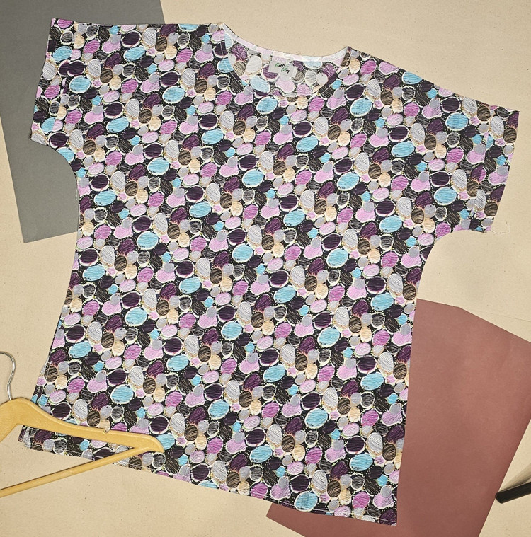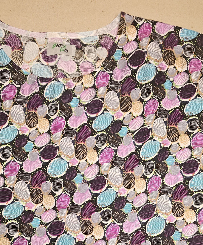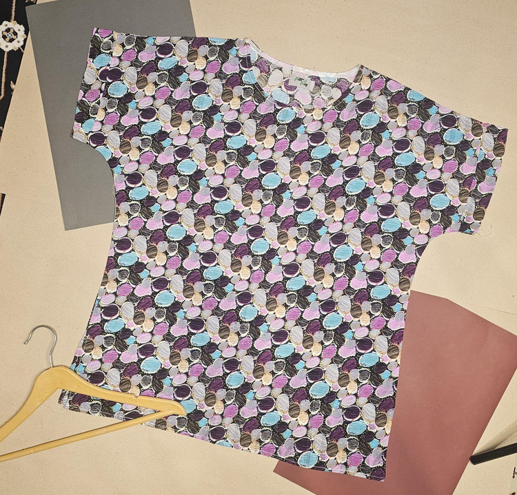 تیشرت نخی طرح اثر با تم رنگی بنفش از پارچه نخی طبیعی تهیه شده دارای طرحی شاداب و زیبا در محیط زندگی است