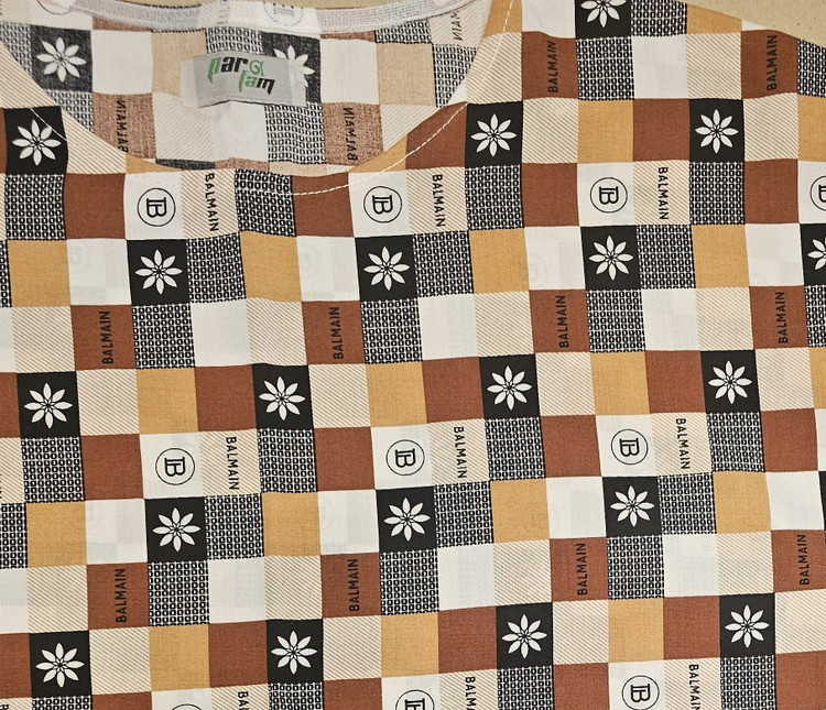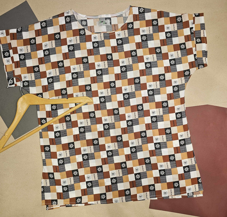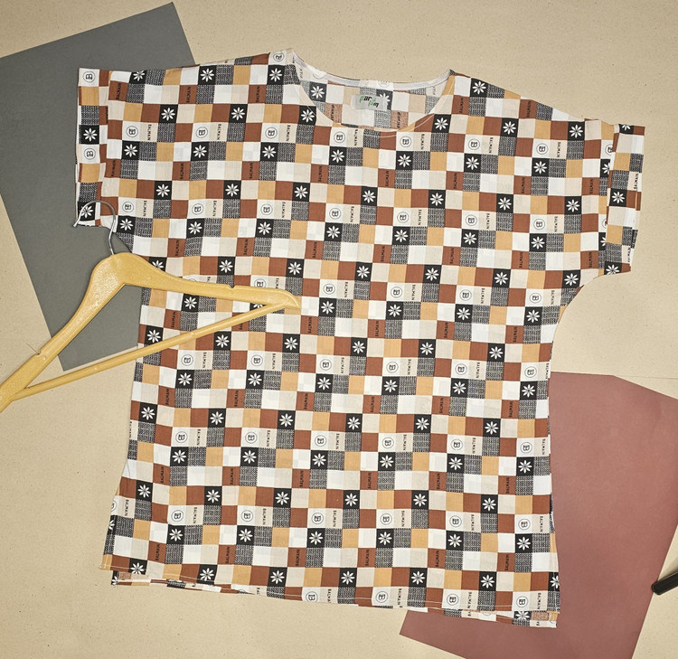 تیشرت زنانه نخی طرح شطرنجی شکلاتی