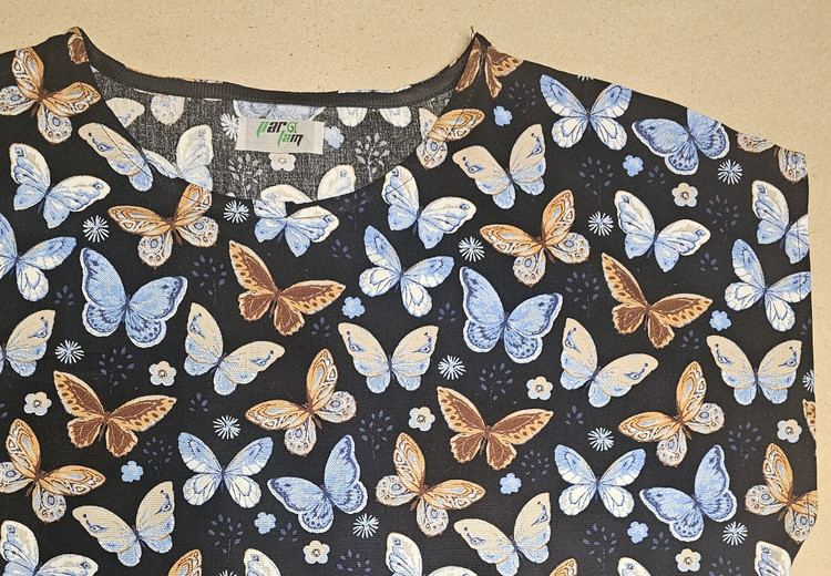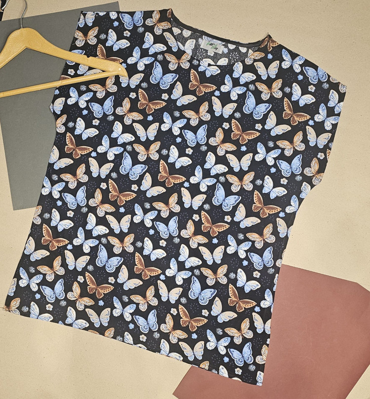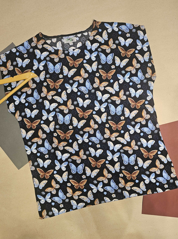 تیشرت نخی طرح پروانه با تم رنگی مناسب از پارچه نخی طبیعی تهیه شده دارای طرحی مناسب در محیط زندگی است